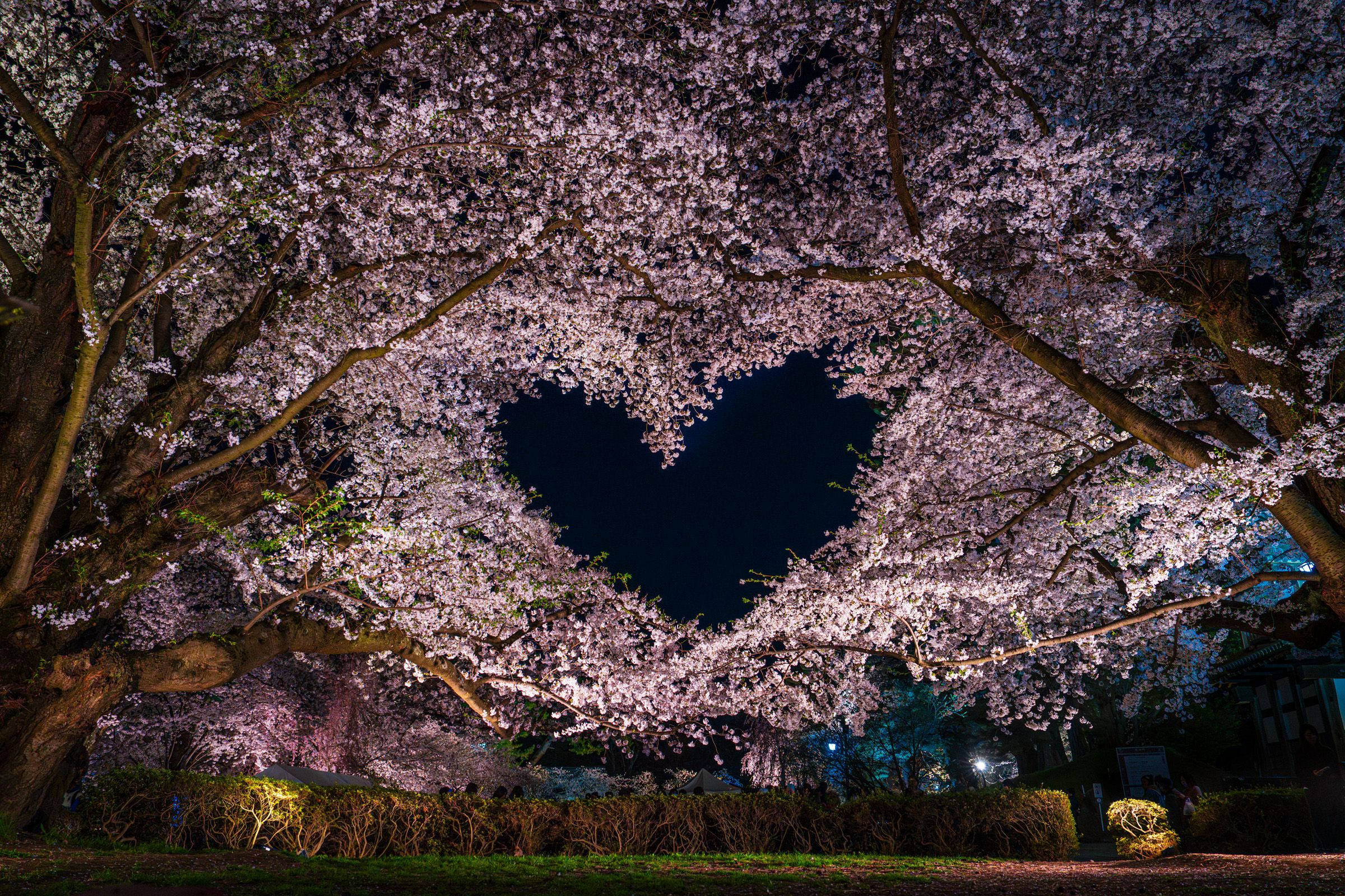 青森県弘前公園隠れスポットのハートの桜。場所はいけばすぐにわかります。夜がオススメ。 #青森県# 撮影地:青森県弘前市 弘前公園