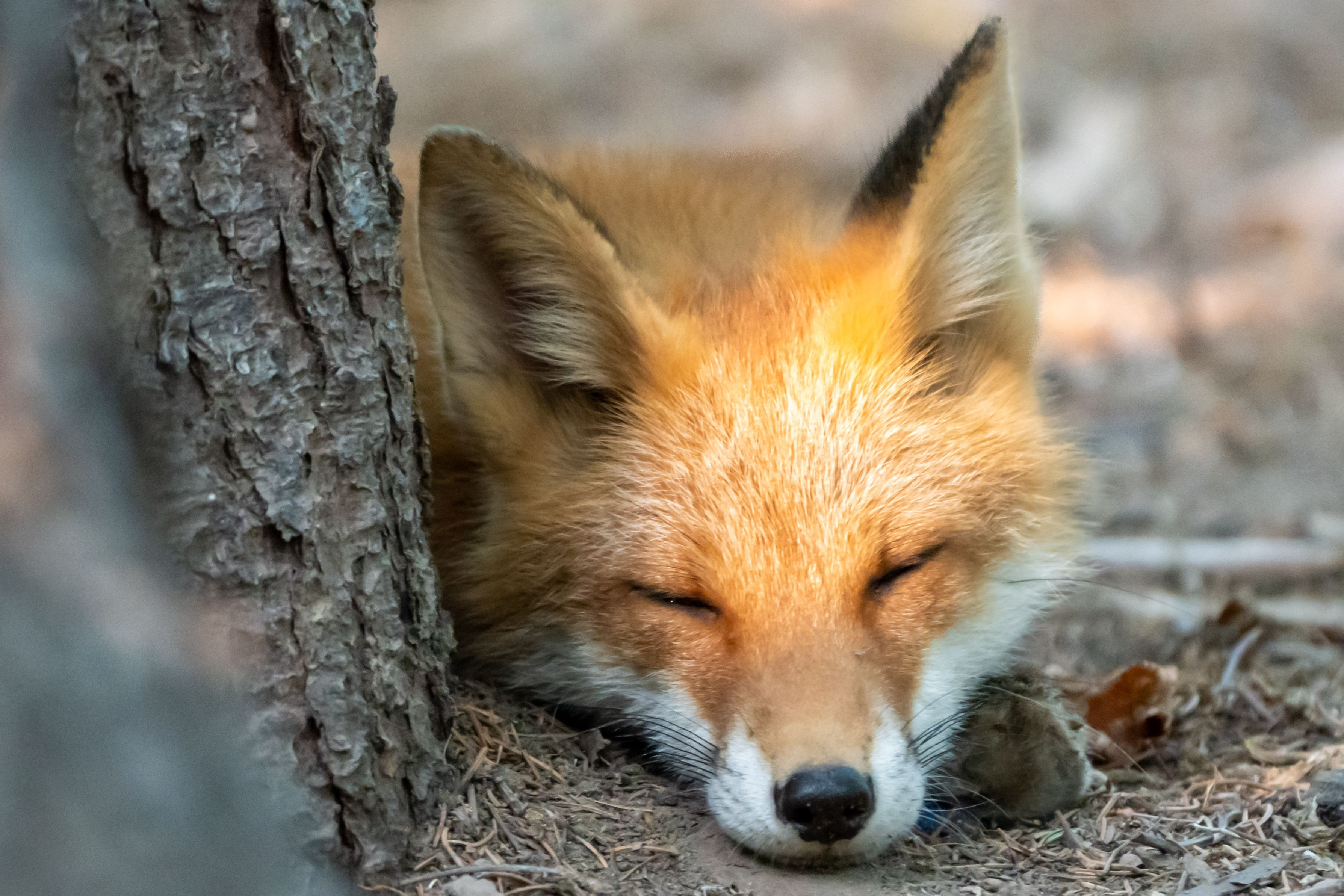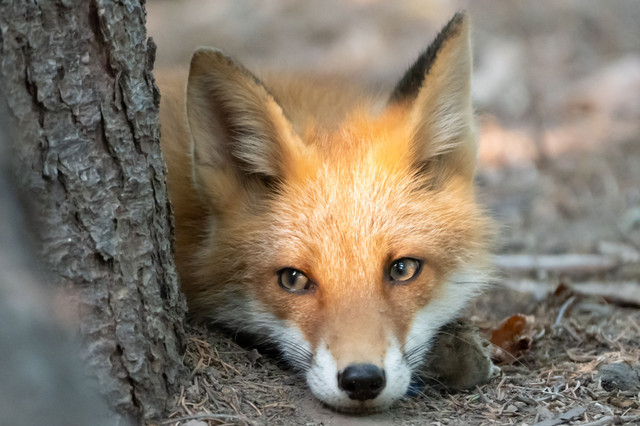 いつも元気な子ギツネ君ですが、暑さのせいでしょうか、ちょっと木陰でひと休み。この日はあまり人前では見せることがない、とてもリラックスした可愛い寝顔を見せてくれましたw