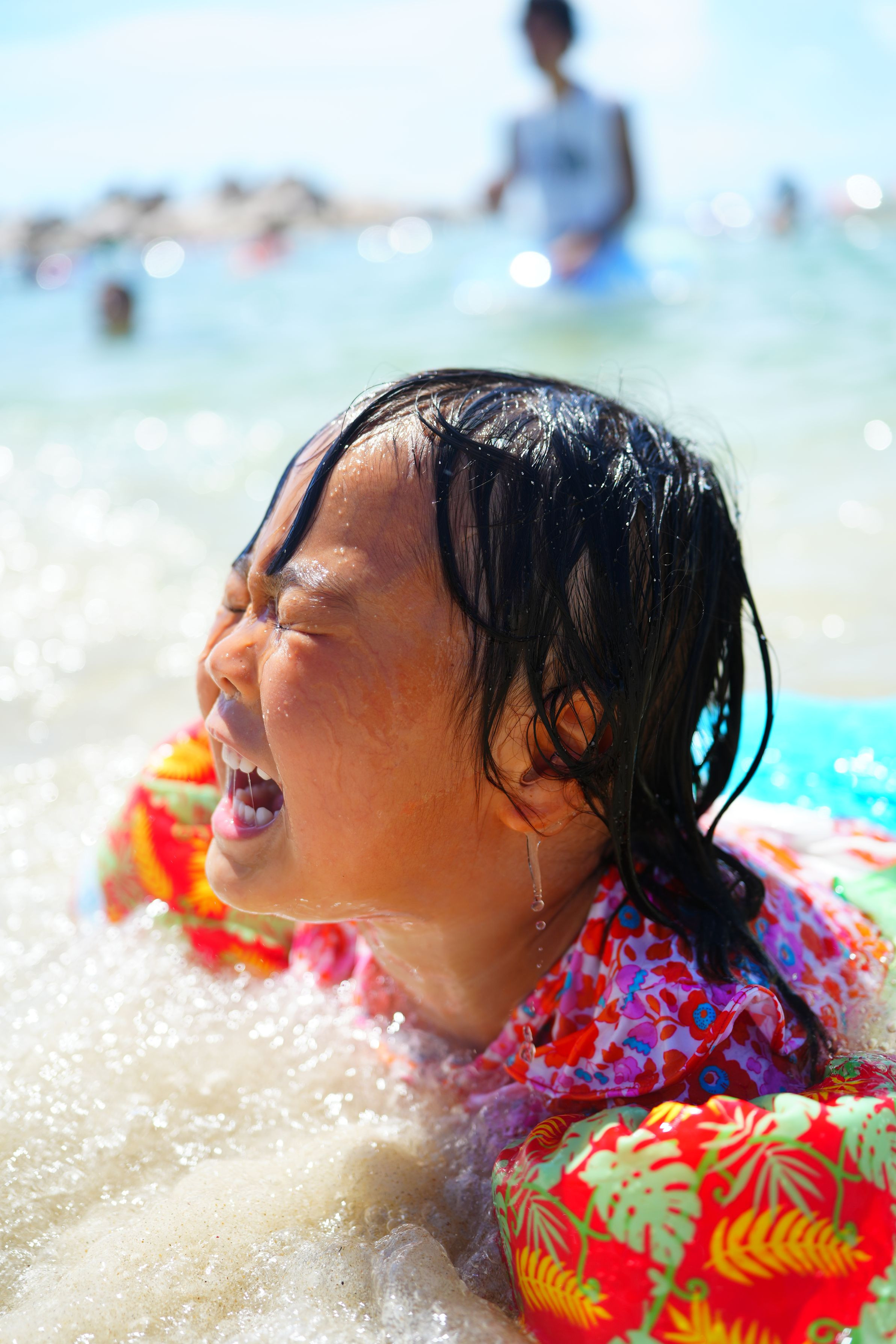 波を受けてそれを思い切り楽しんでいる表情の二女です。