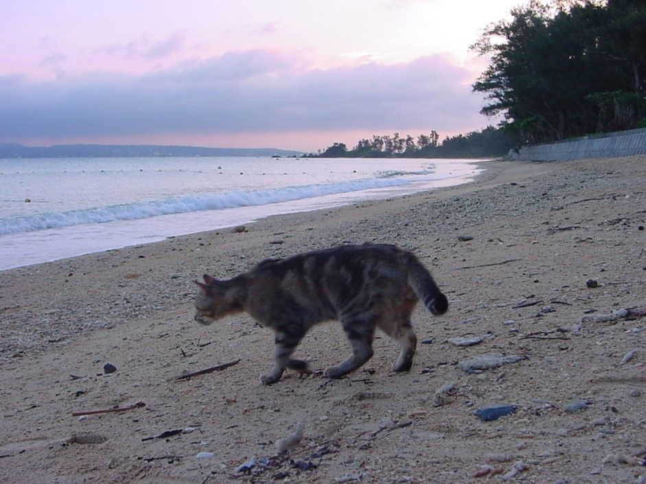 とある海辺で見つけた猫。何か獲物を探してる。
