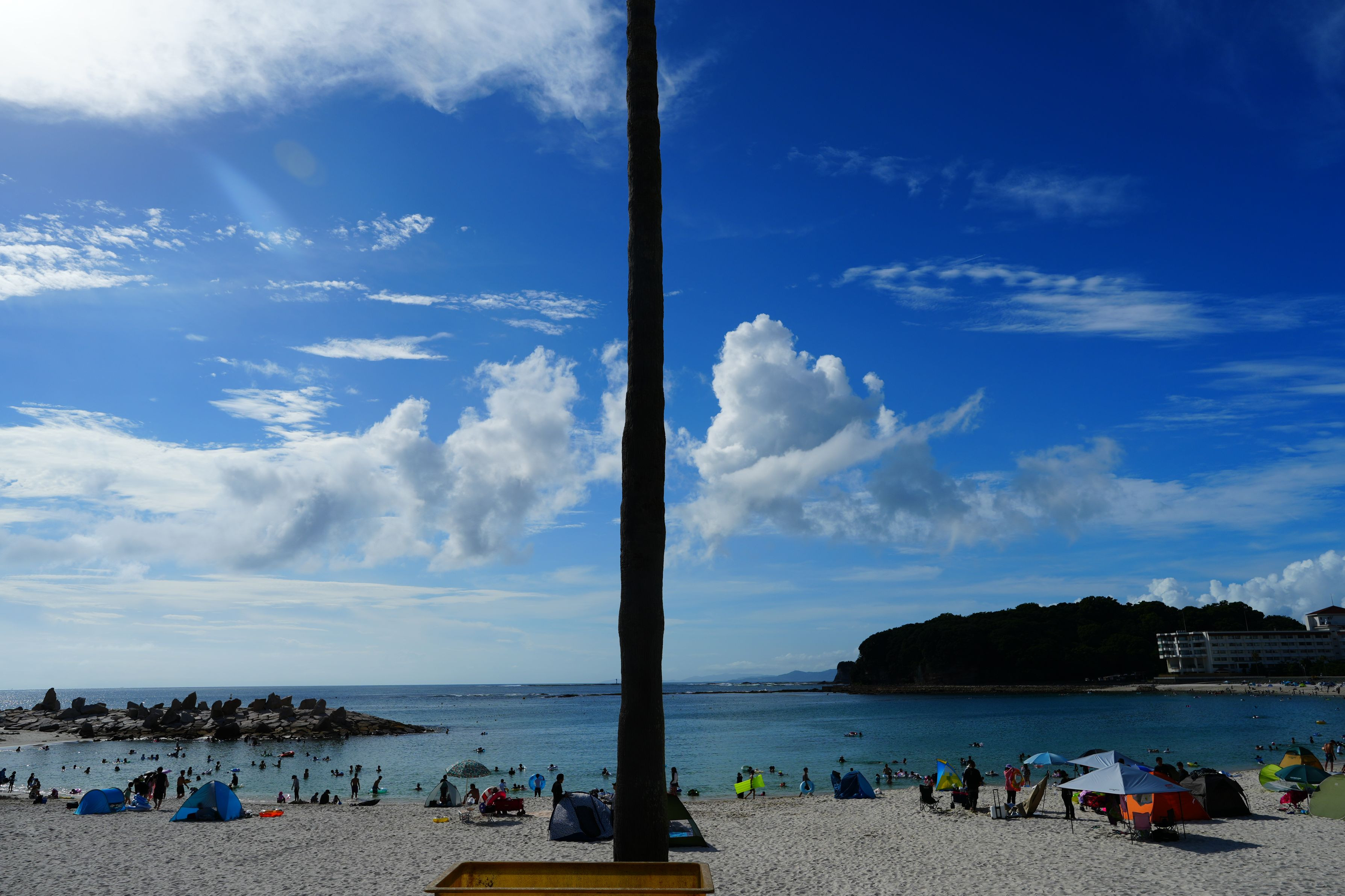 白浜の木?が高くそびえ立ってるのを見て、これで左右分割して撮影してみたら面白いんじゃないかと思って撮ってみました。 結果さしたる対比も生まれませんでしたが…なんか面白いとこないかなと思いアップします。