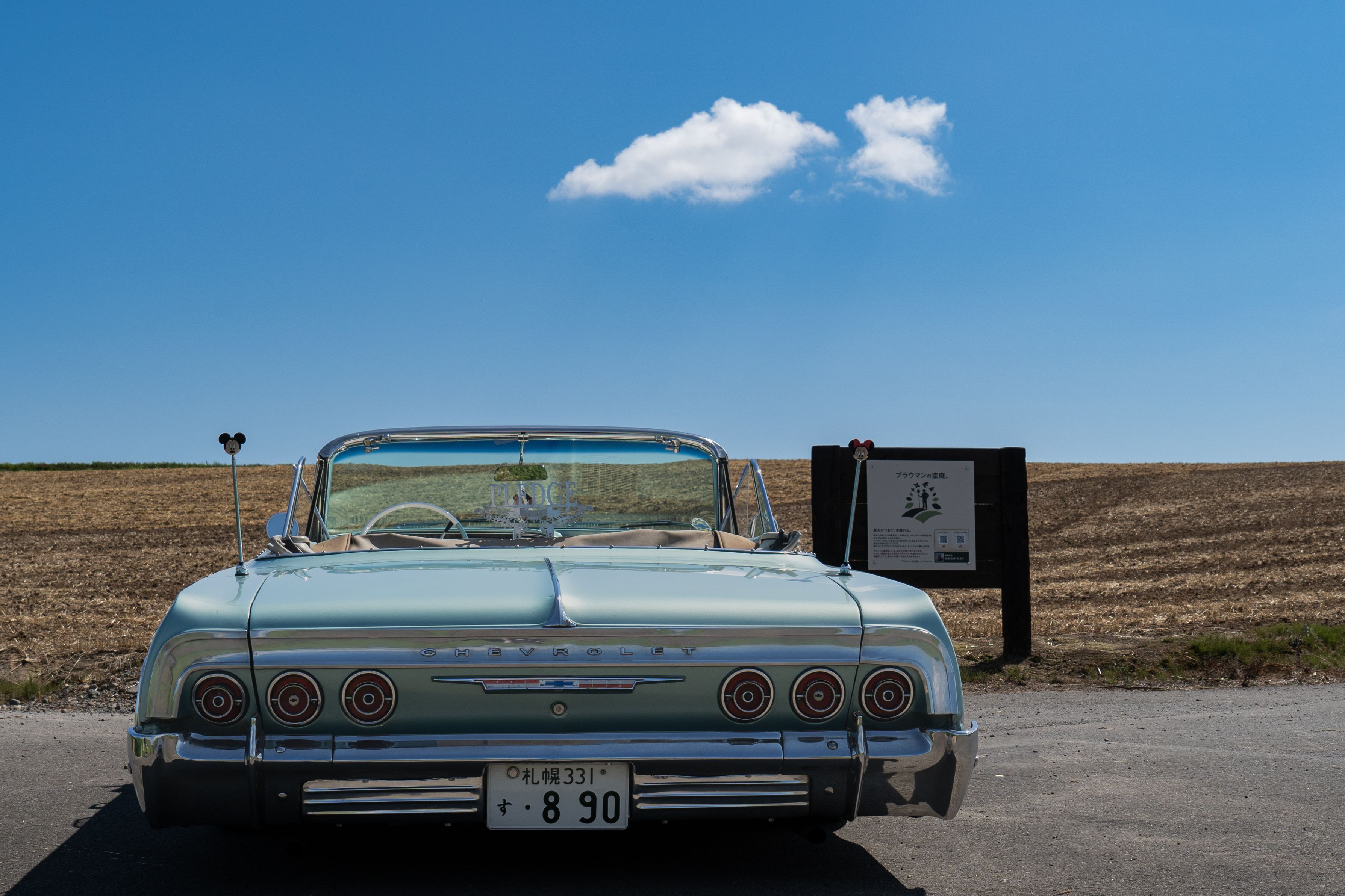 シボレーインパラで 35℃の炎天下の中を オープンで走って来ました。 人間は真っ赤に焼けました😅