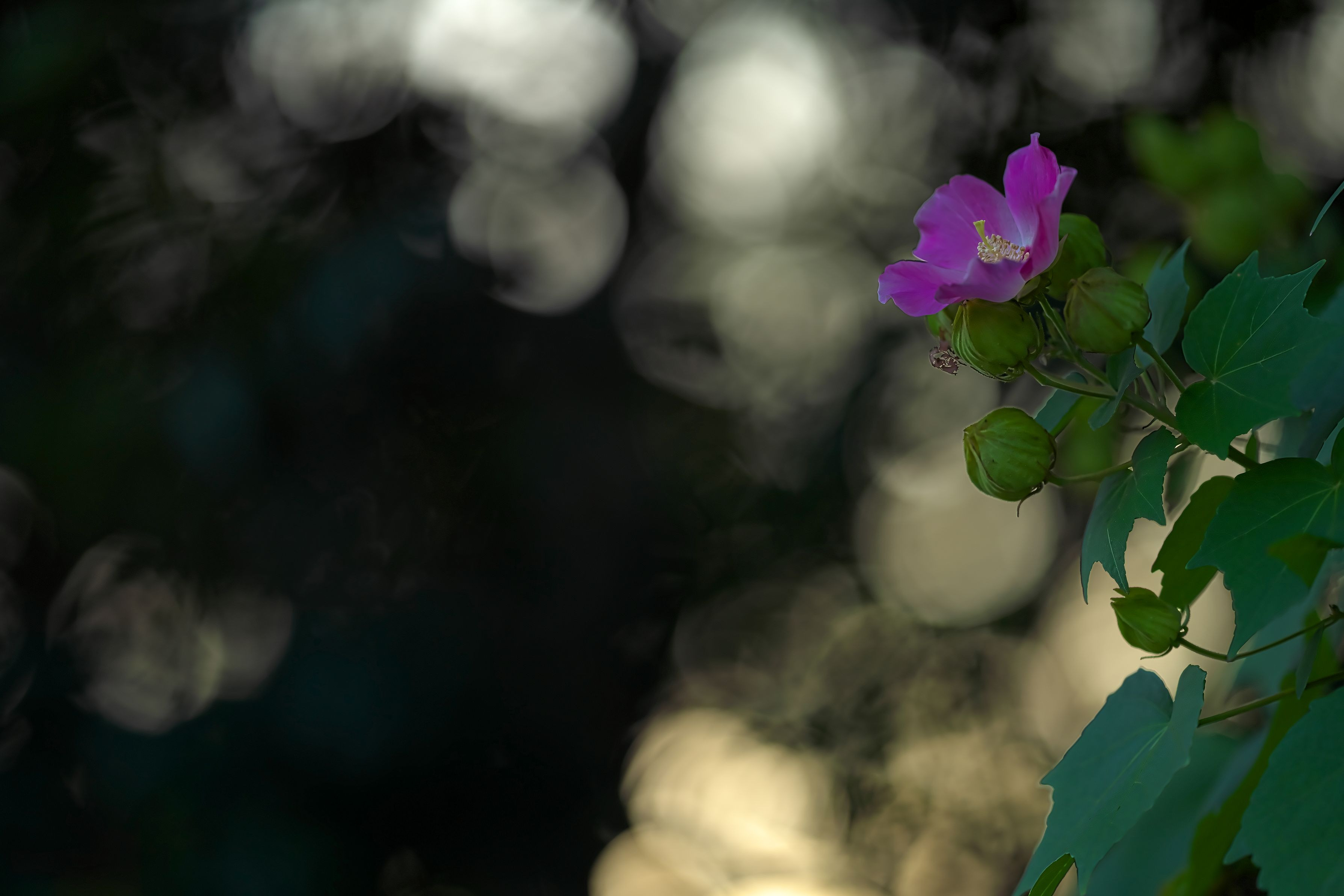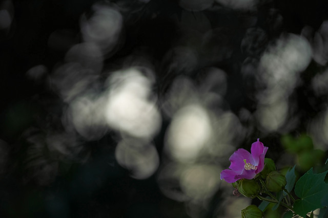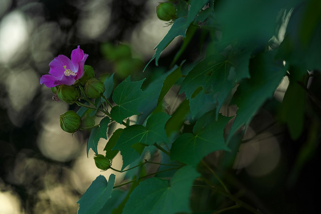 芙蓉の花は朝の光の中で美しさを際立たせます