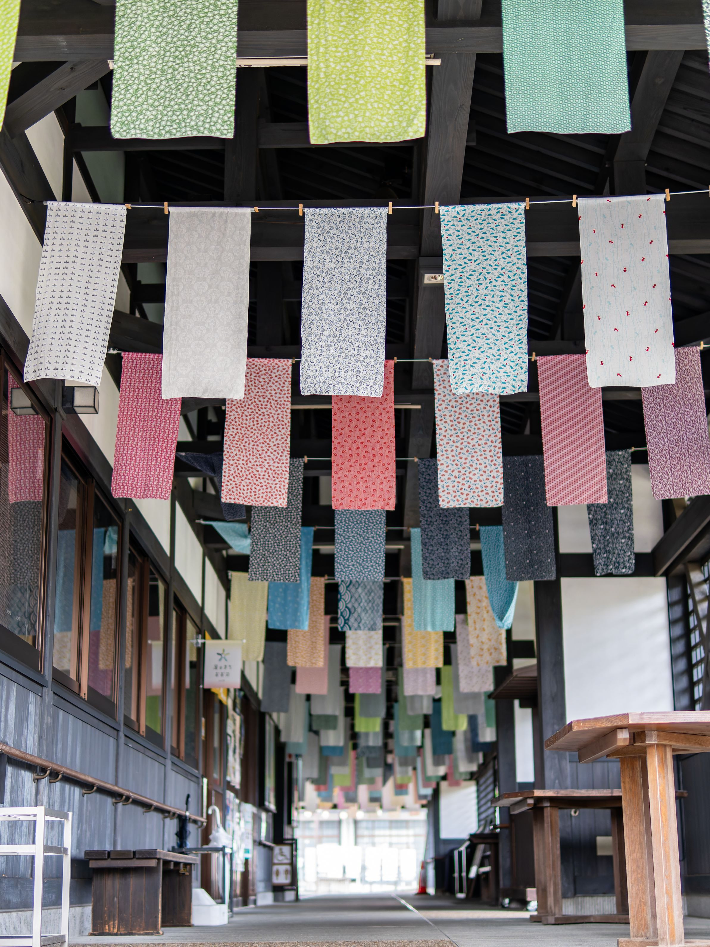 福井県大野市の結楽座に設置されている手ぬぐいです。