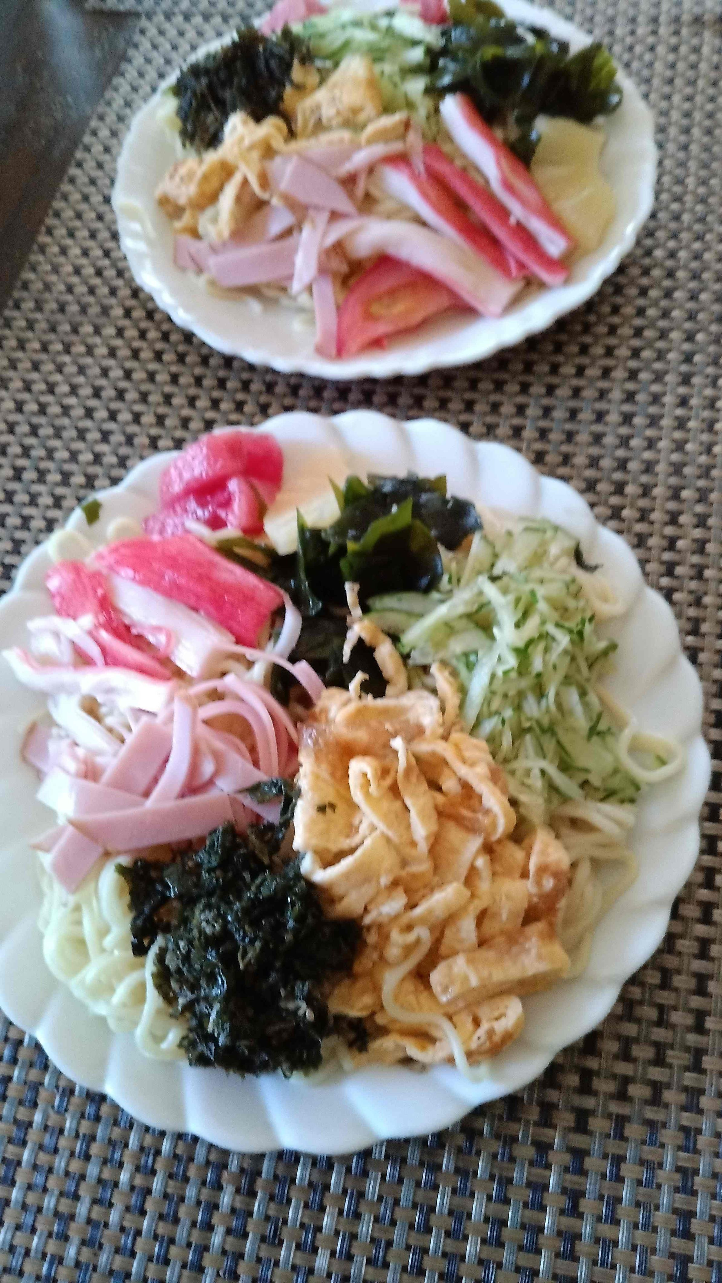 家庭菜園で採れたあさどり野菜で、冷やし中華を作りました。ごま油をたっぷり入れました。美味しさか抜群です。