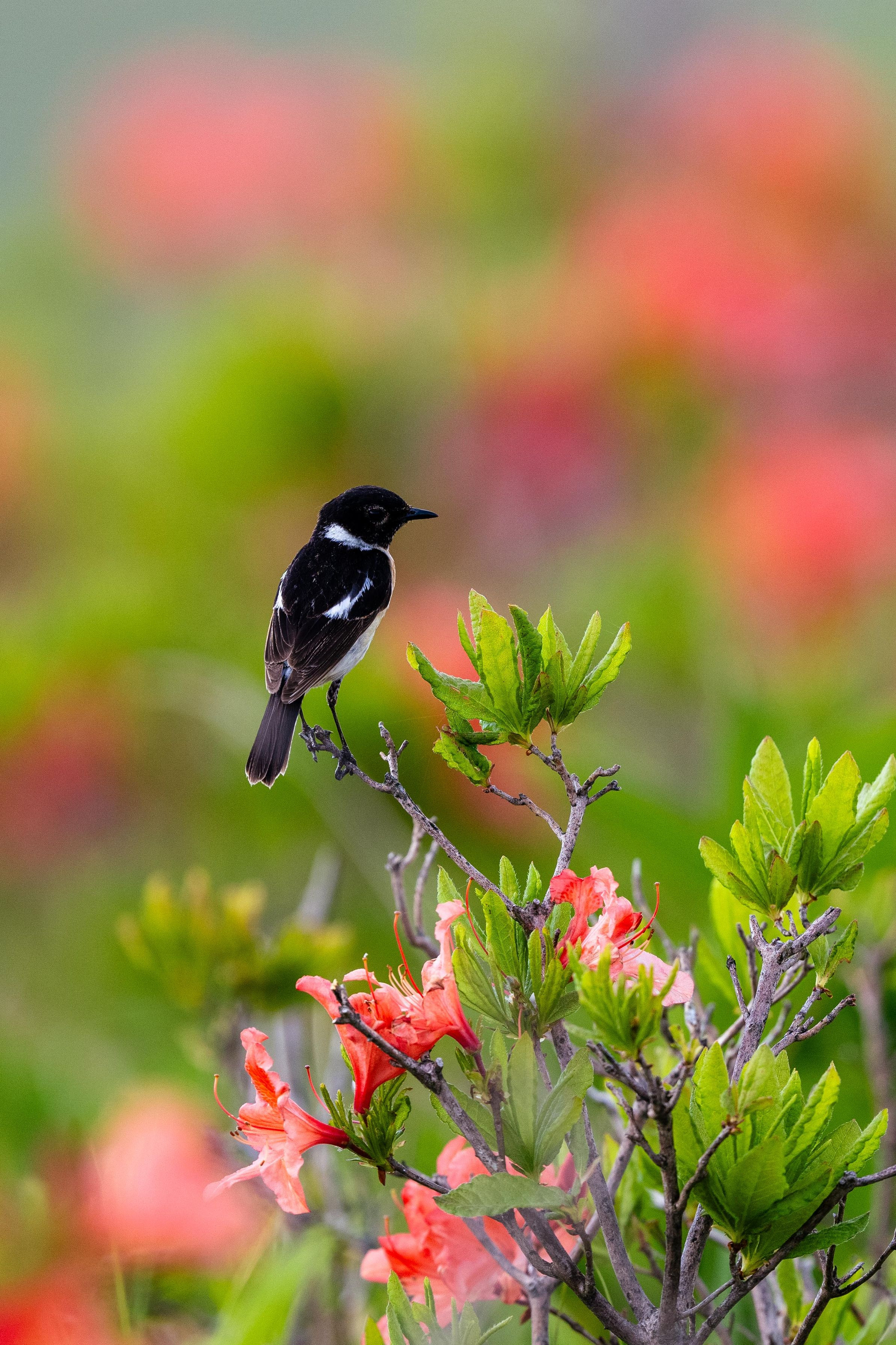 ノビタキ雄とレンジツツジのコラボ #ノビタキ# #レンジツツジ# #カレンダー2025##生きもの_一般#