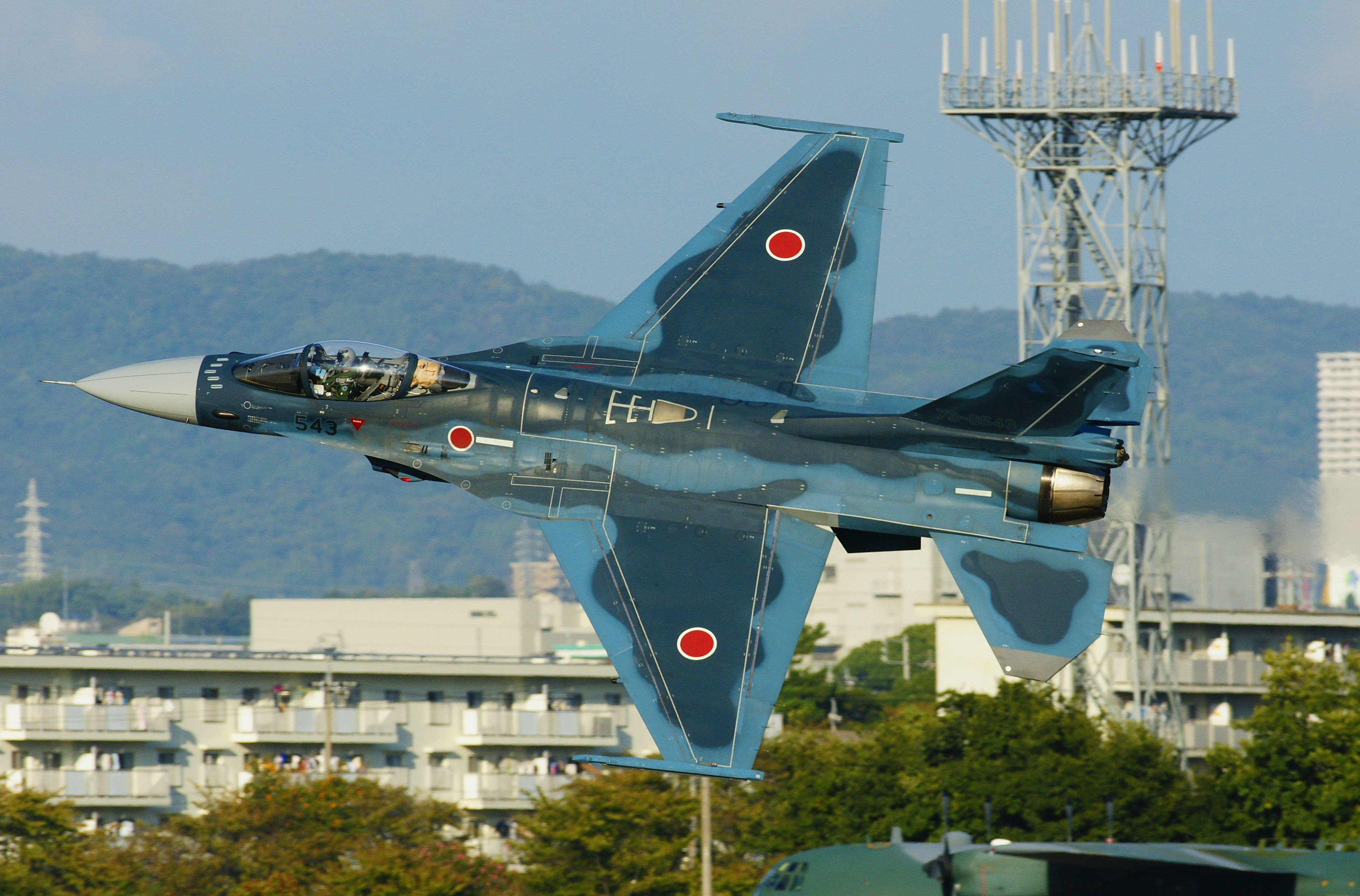 高度を取らず離陸した後、思い切り翼を大きく振り 小牧基地航空祭を後にする F-2A 伝説になった、ご機嫌ようサヨウナラ〜フライト