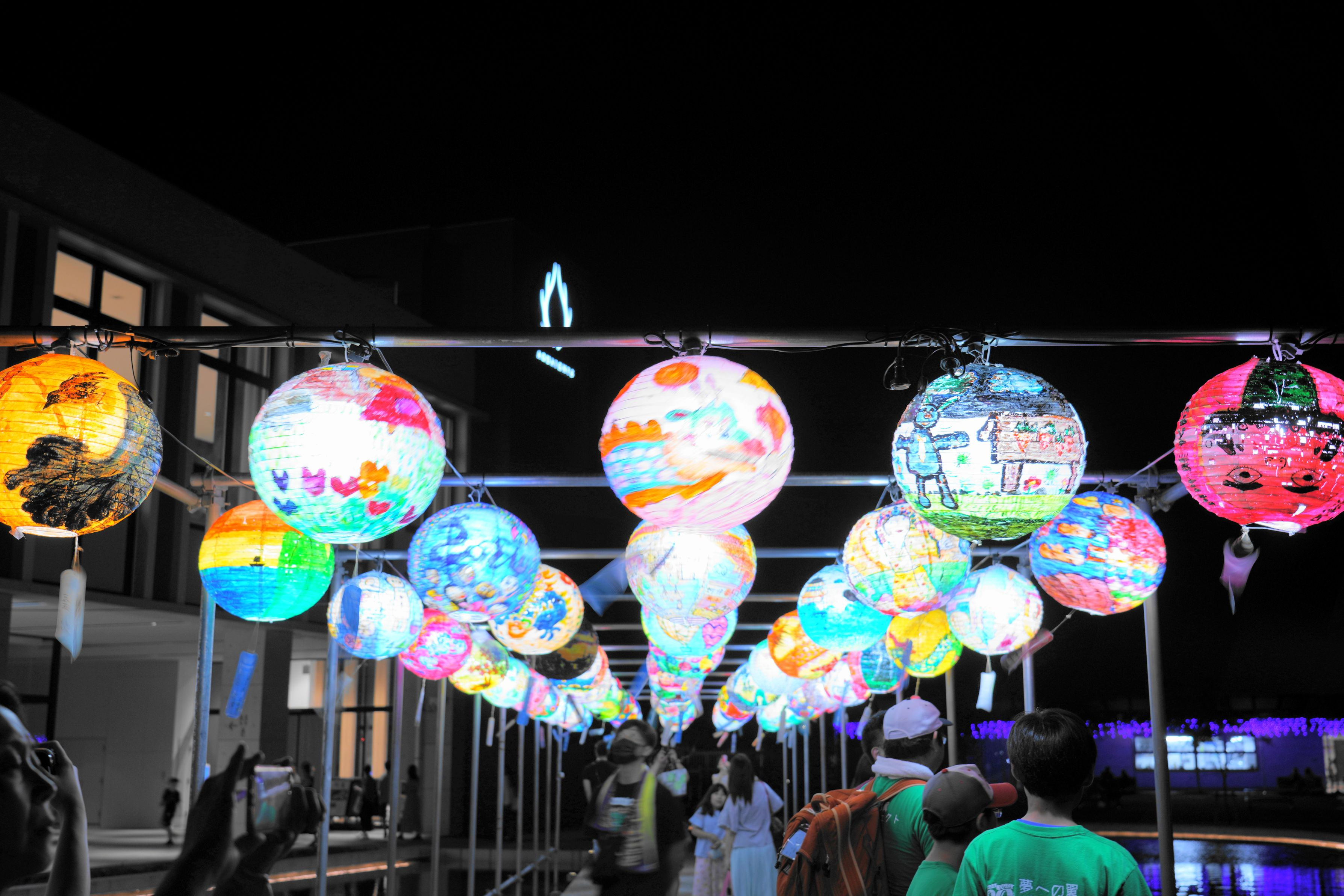 アクアイグニス仙台にて開催された台湾ランタン祭に行ってきました。 大人から子供まで多くの人が訪れてました。 駐車場も満車で入るまで少し待ちました。