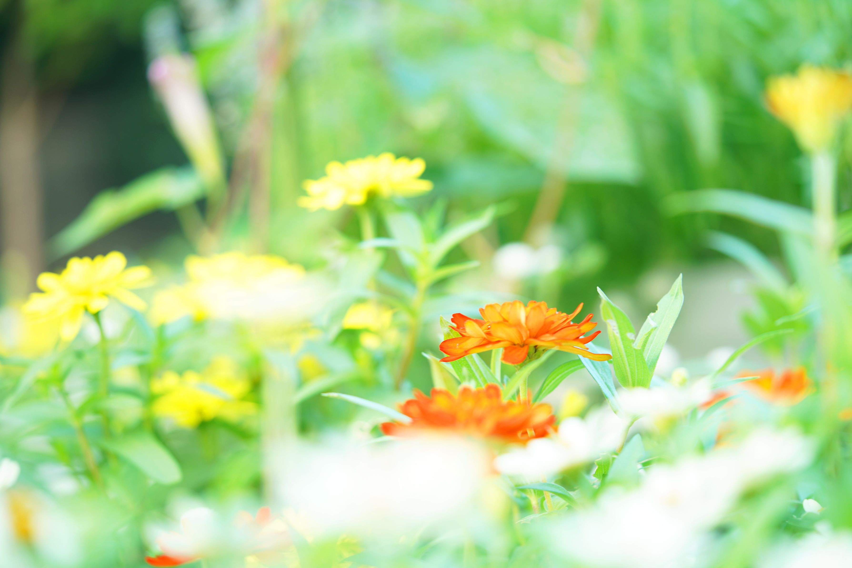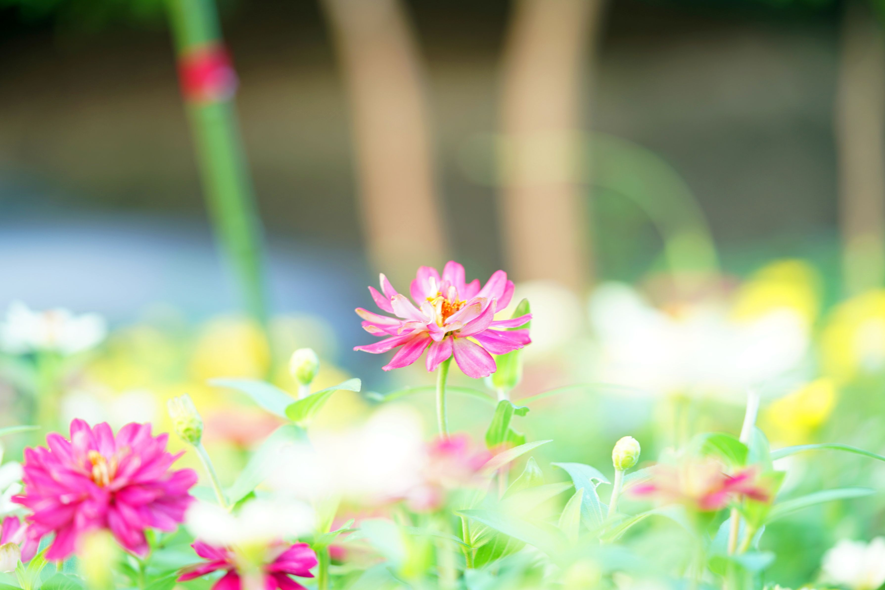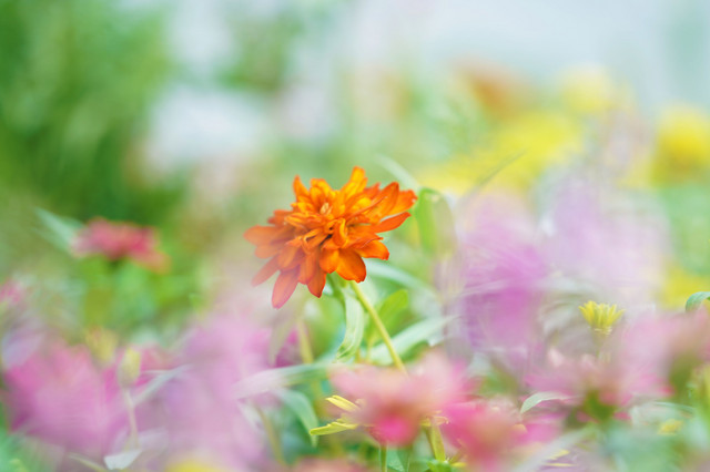 暑くても元気に咲いている夏花壇のヒャクニチソウ。