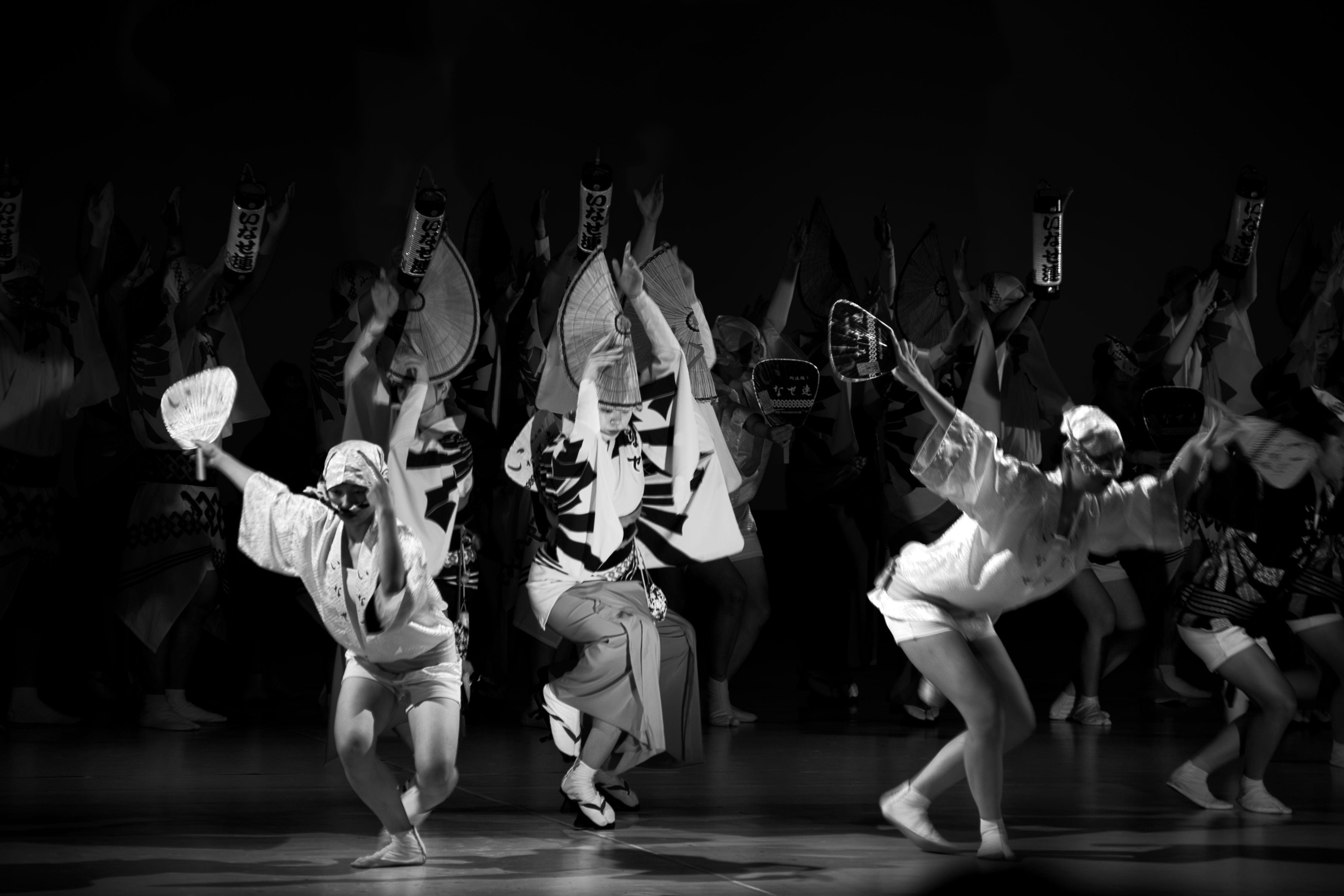 本場徳島・東京高円寺と併せて南越谷、日本三大阿波踊り #埼玉県# 舞台踊り:スローシャッター被写体ぶらしで動きを表現 モノクロで「静と動」を印象的に表現しました。