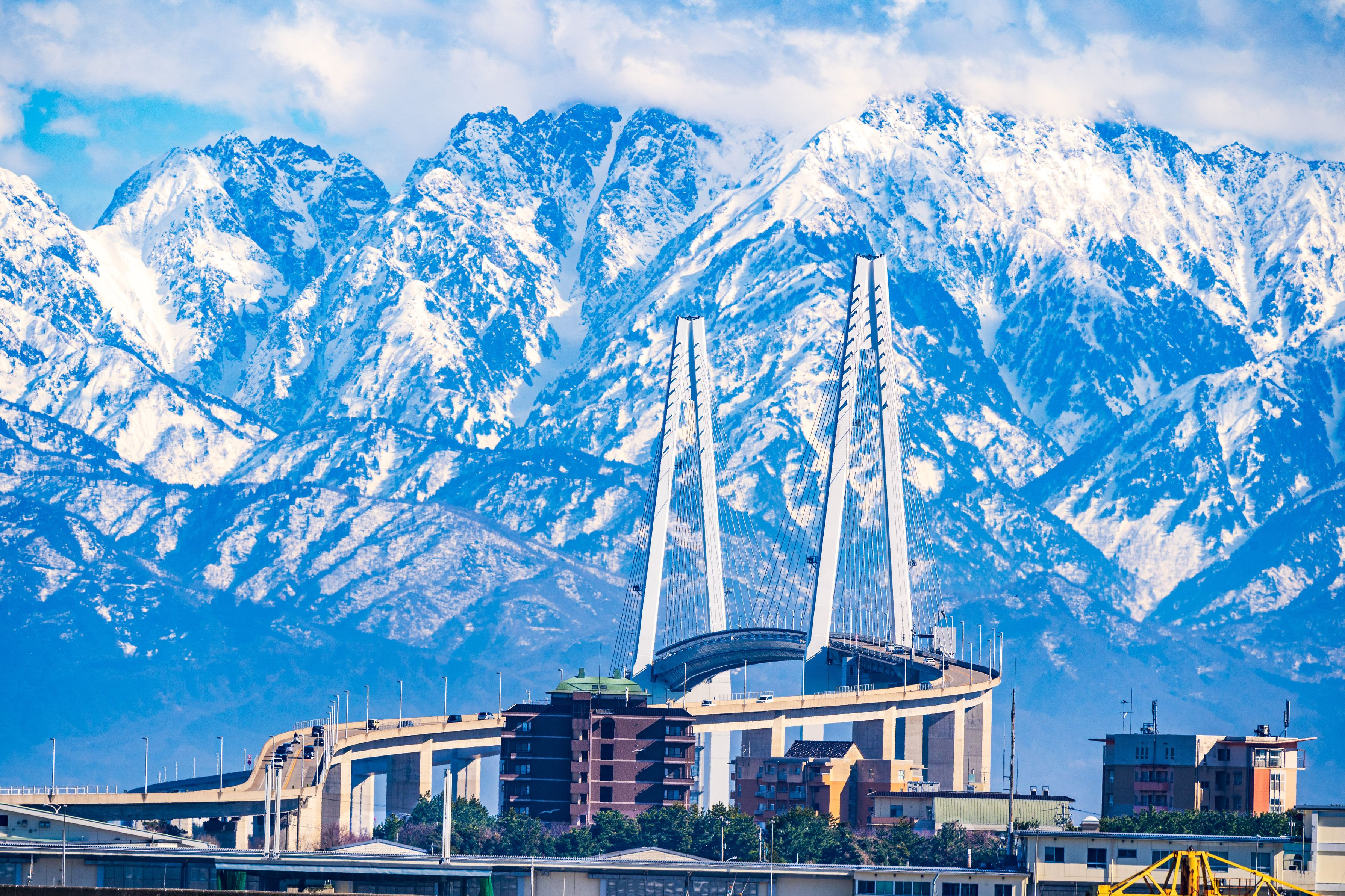 製品情報>My Sony>αcafe>新湊大橋と立山連峰(剣岳)(ふぁーさいとさん)