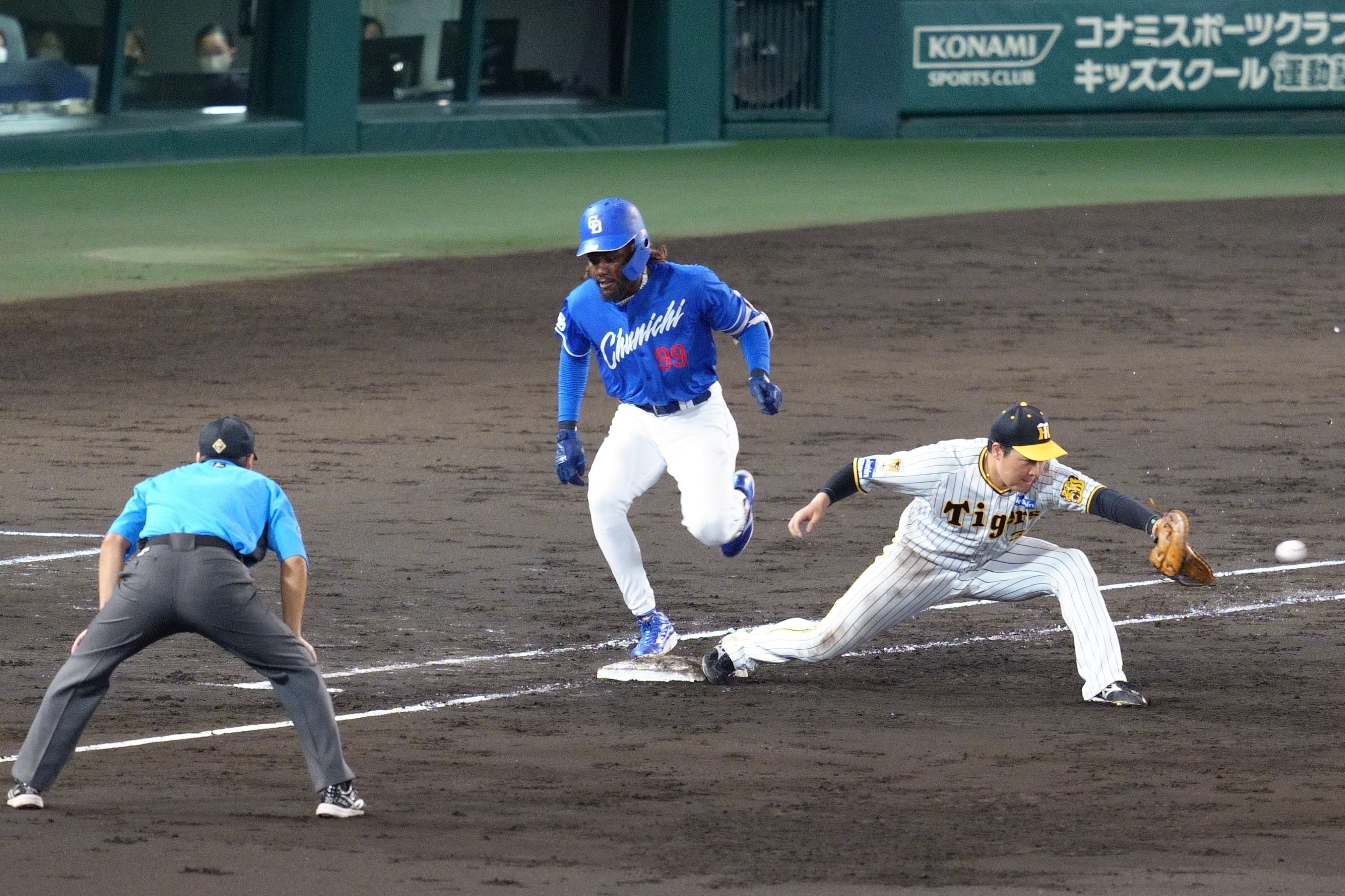 2024/09/05 阪神2-1中日 五回、ドラゴンズ・カリステのショートゴロはボテボテすぎて併殺ならず こんなに明確なセーフの判定なのに、アウトではないかとリクエストした岡田監督に驚いた