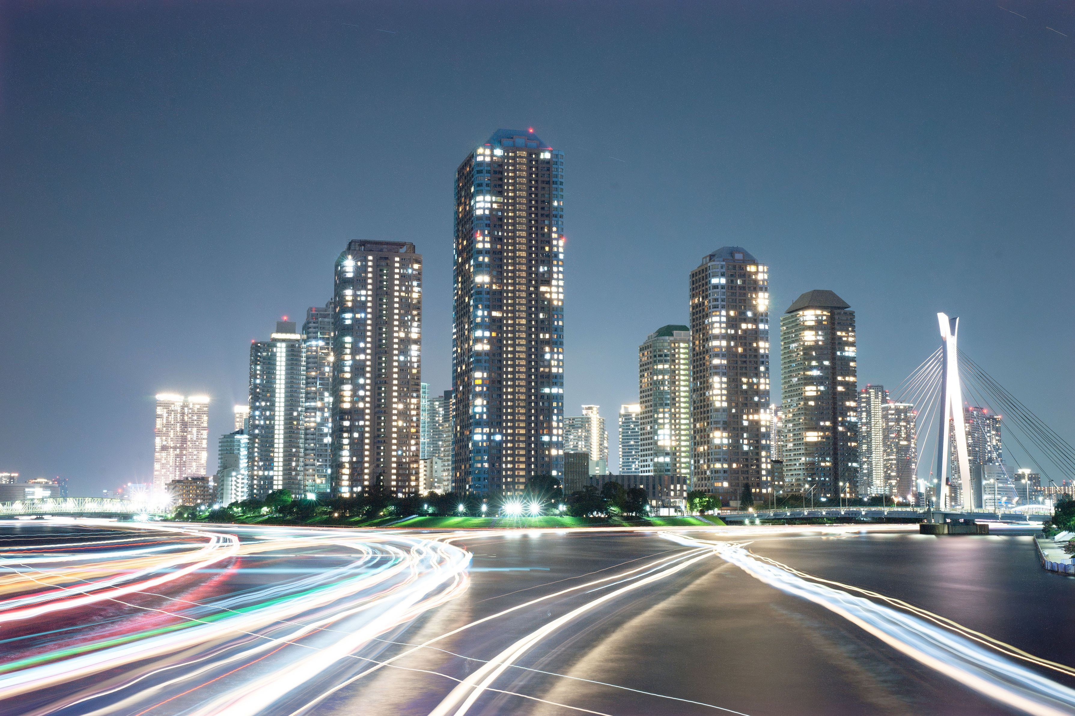 永代橋チャレンジ3回目。う~ん2回目の方がよかった? ちなみに比較明合成2枚です。
