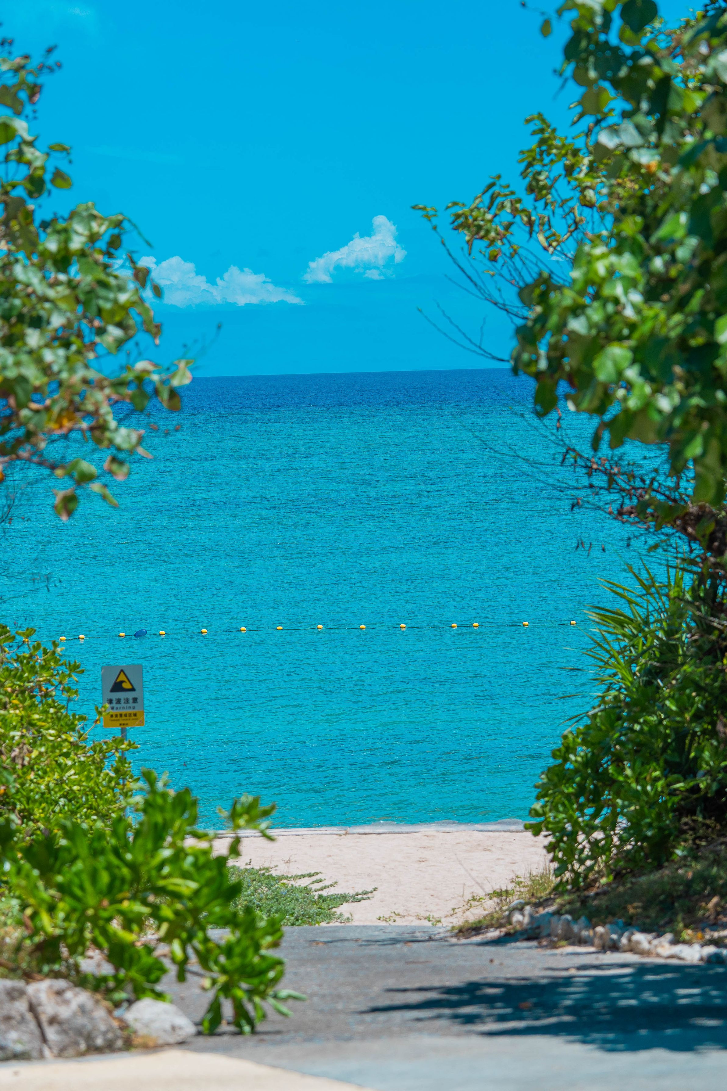 道を抜けた先に広がる、白砂と青い海が出逢う静寂の楽園。遠浅の海は、波に抱かれた時を忘れさせ、モンパノキの緑が浜辺を神秘の色に染め上げる。東から昇る日は、静かに大地を照らし、幻想的な一日の始まりを告げる。
