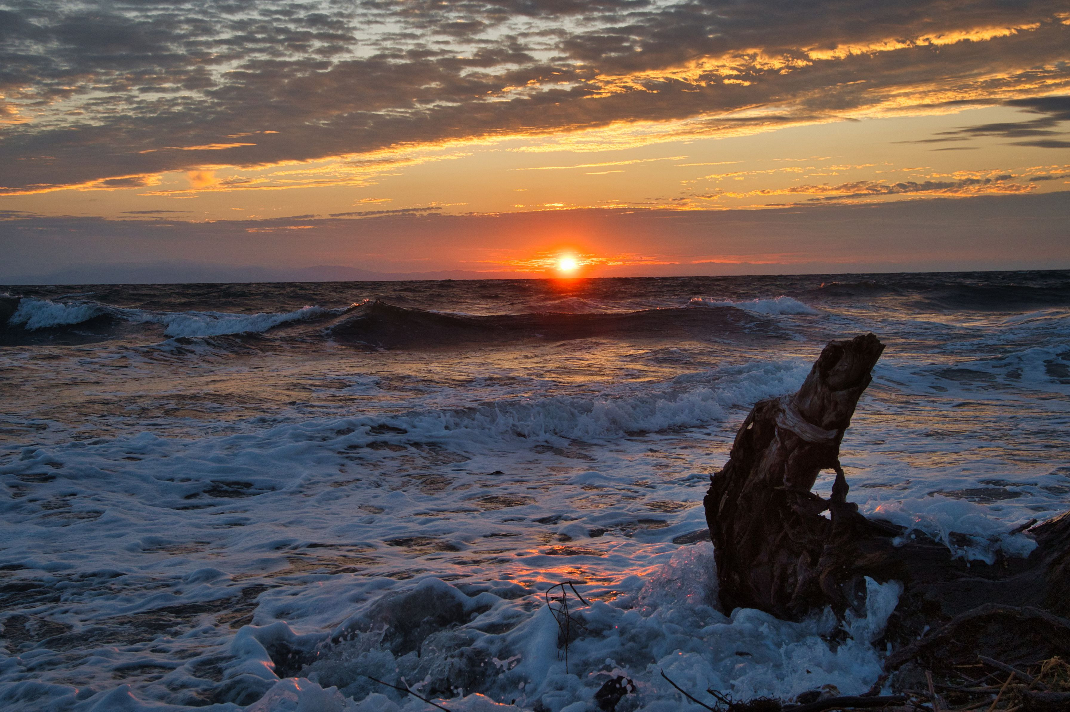 少し波の高い朝の海。 お日様が雲の間から顔を出してくれました(^^)/