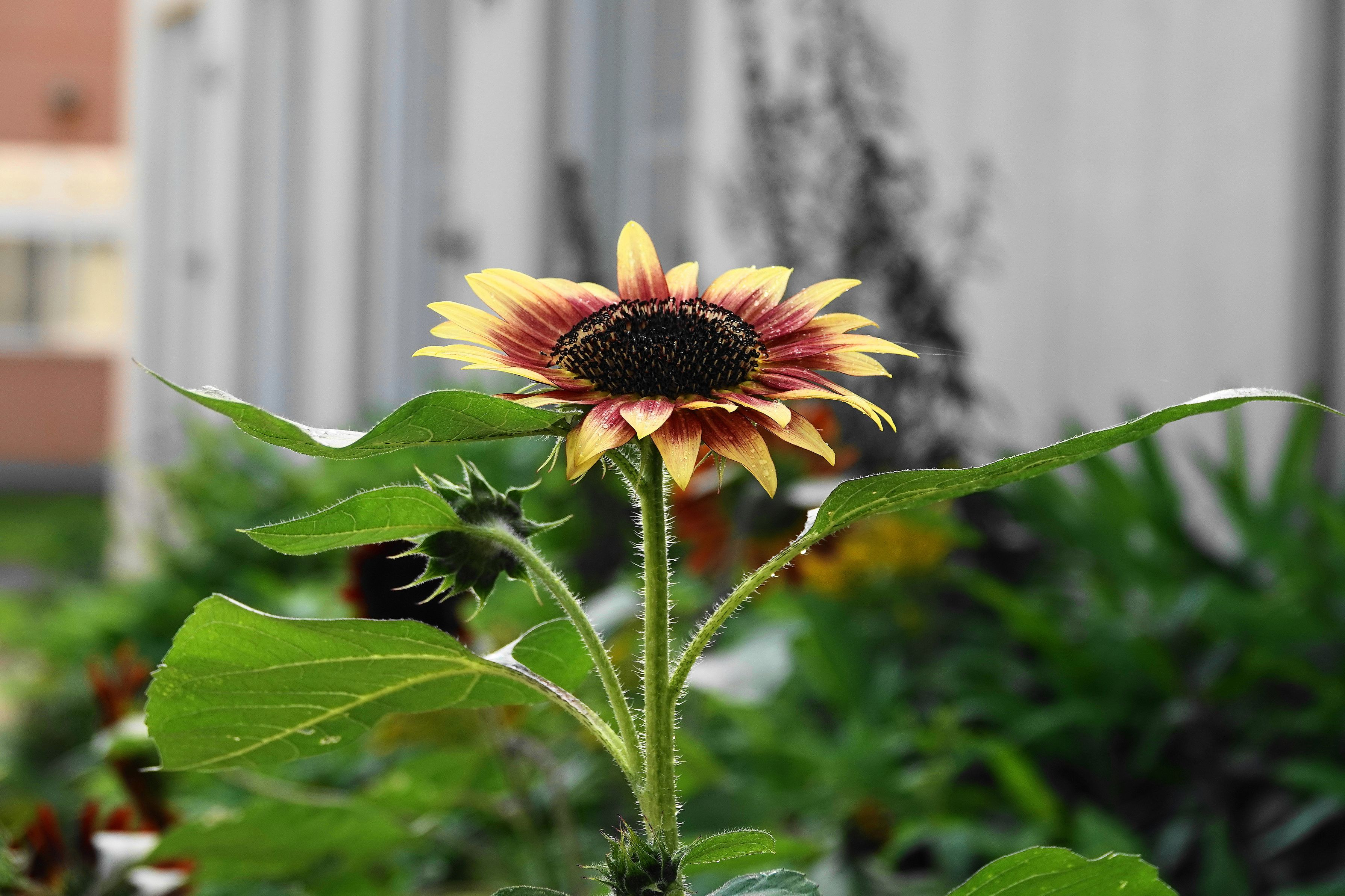 庭に向日葵が1本