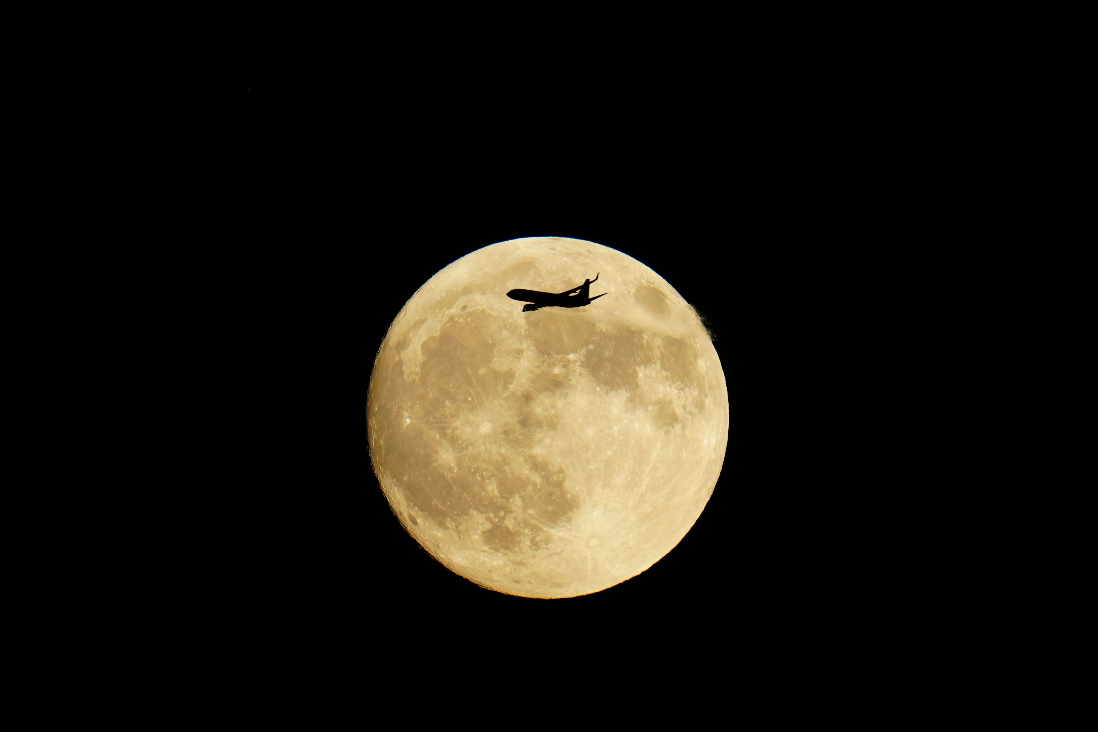 スーパームーンが見守るANA機の着陸進入