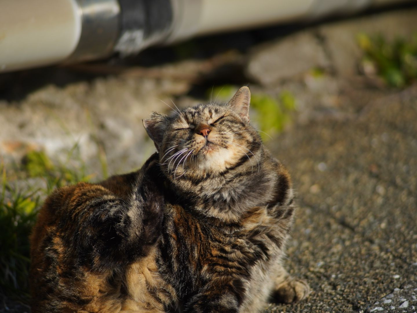 夕日に当てられて、マイペースに頭をかきかき。今日も1日頑張ったのかな?🐈