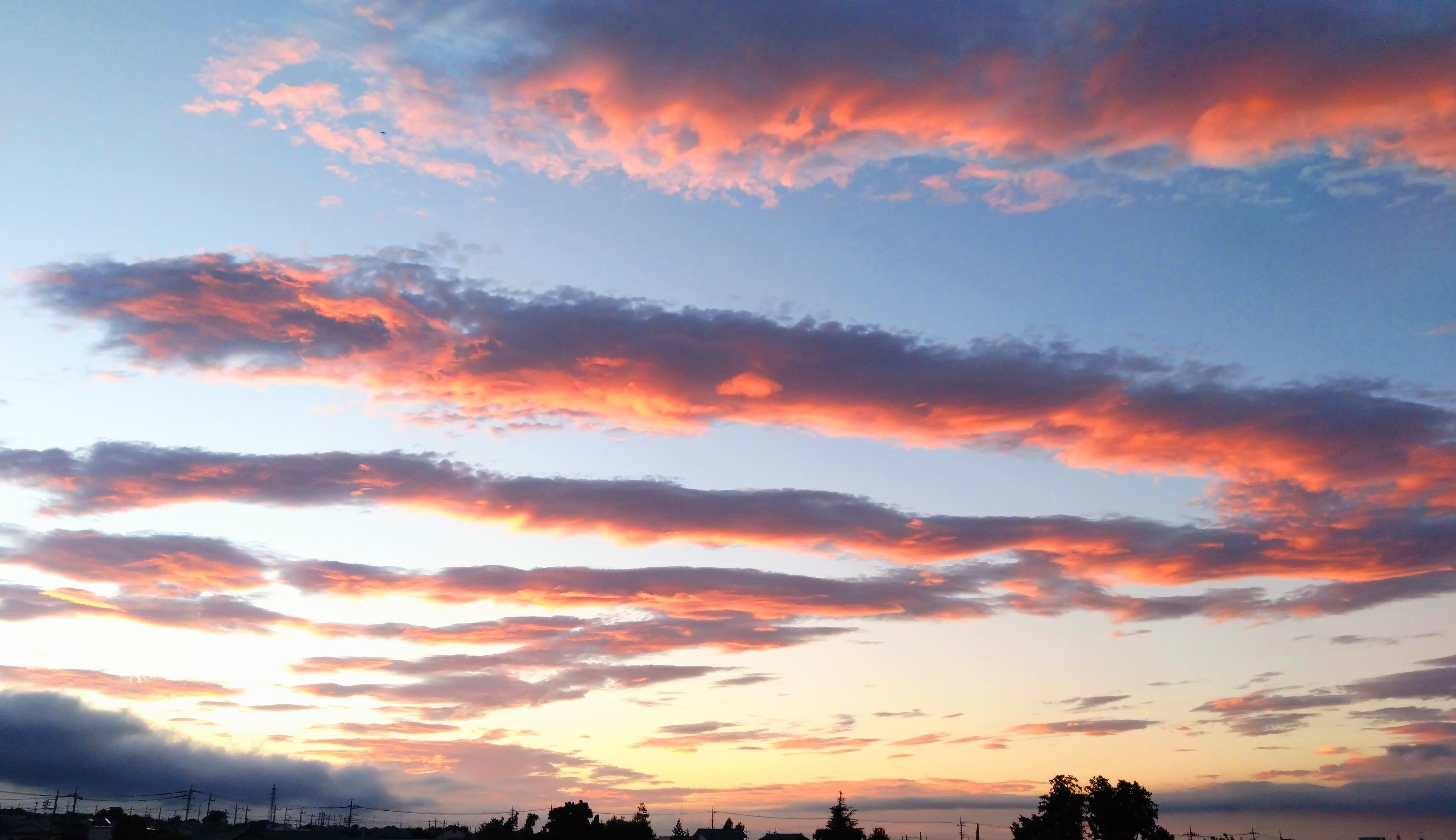 自宅から撮った朝の空です。陽の光が雲に当たって、まるで夕空のような感じでした☆