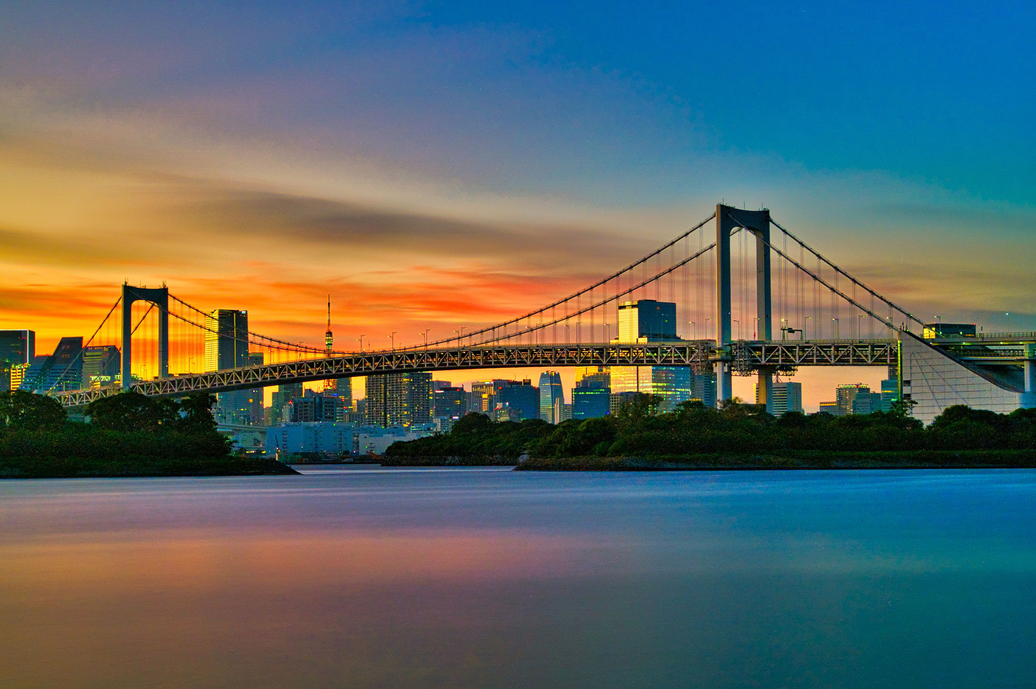 マジックアワー街の灯り・夕焼け・空と海 長時間露光141秒で夕焼け空を海に溶かして幻想的・印象的に 奇蹟の夜景を表現しました。 #東京都#