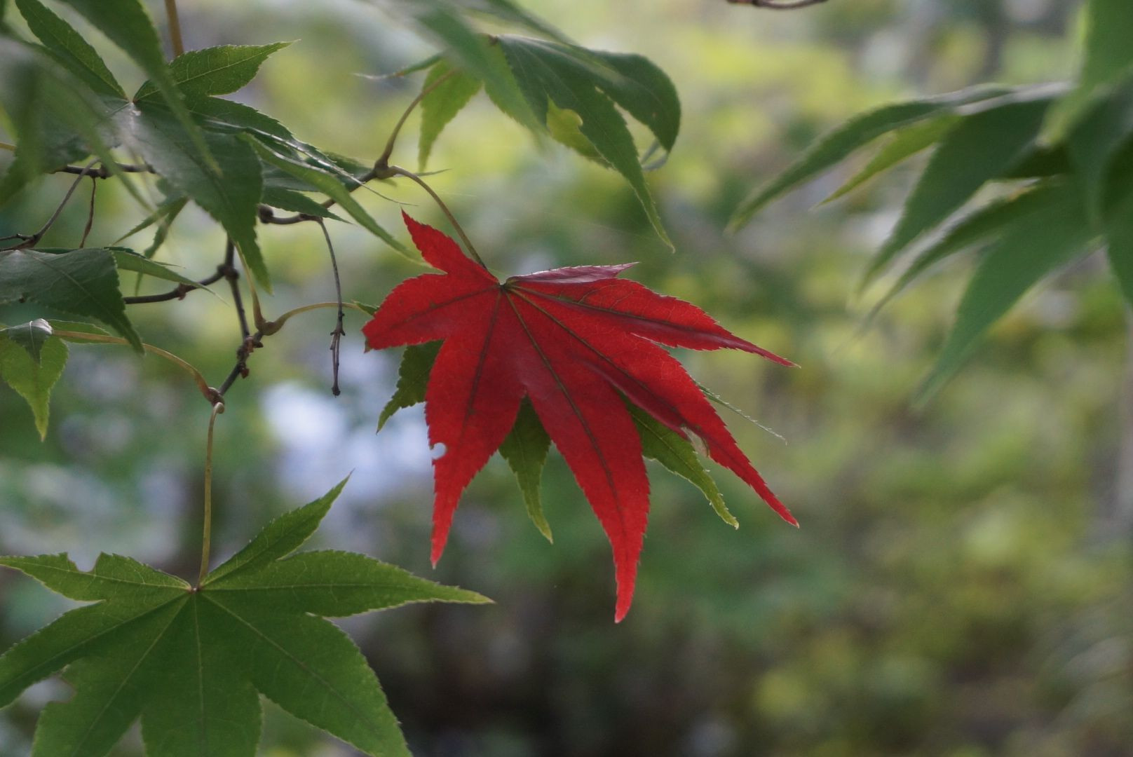 夕日とモミジ