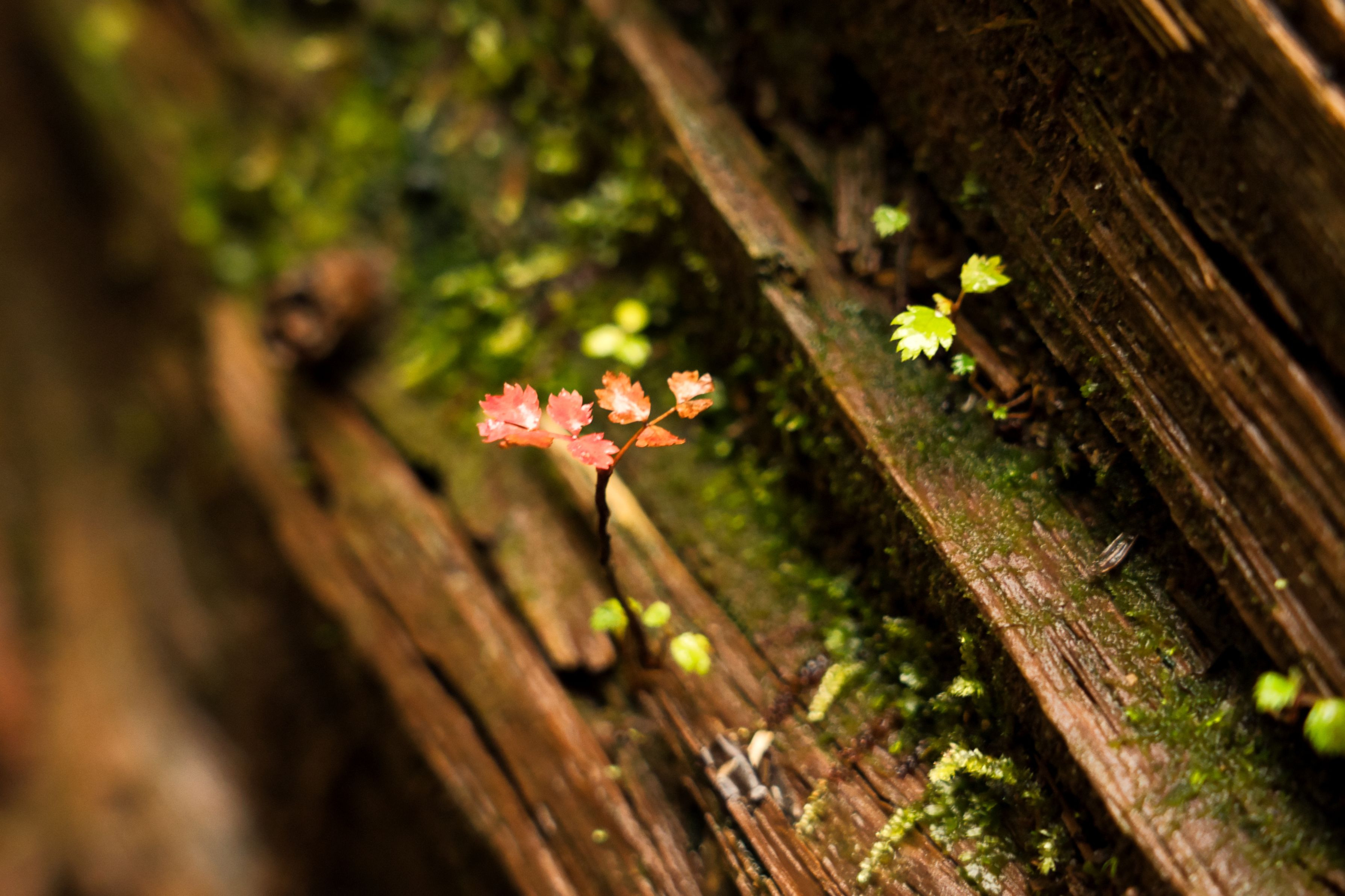 2024年9月21日(土) 尾瀬の燧ヶ岳登山で悪天引き返しの下りで一人むなしく滑ってこけた時に見つけて癒されました😊 朽ちてゆく材から芽生える紅葉かな🎶 #福島県#