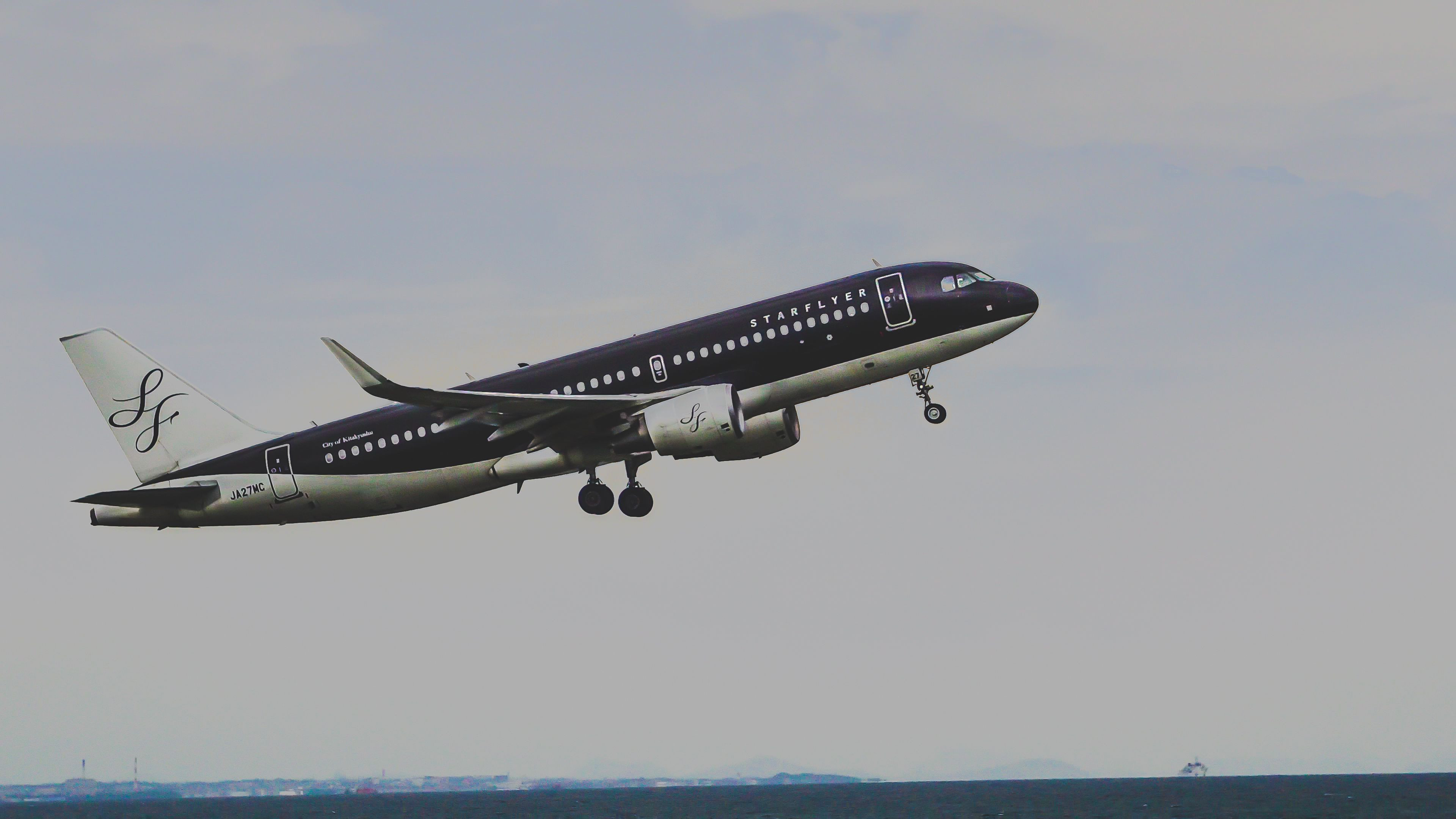 お仕事で北九州空港へ来たので、ちょうど離陸中だったスターフライヤーを撮影してみました。 練習あるのみ、ですな😓