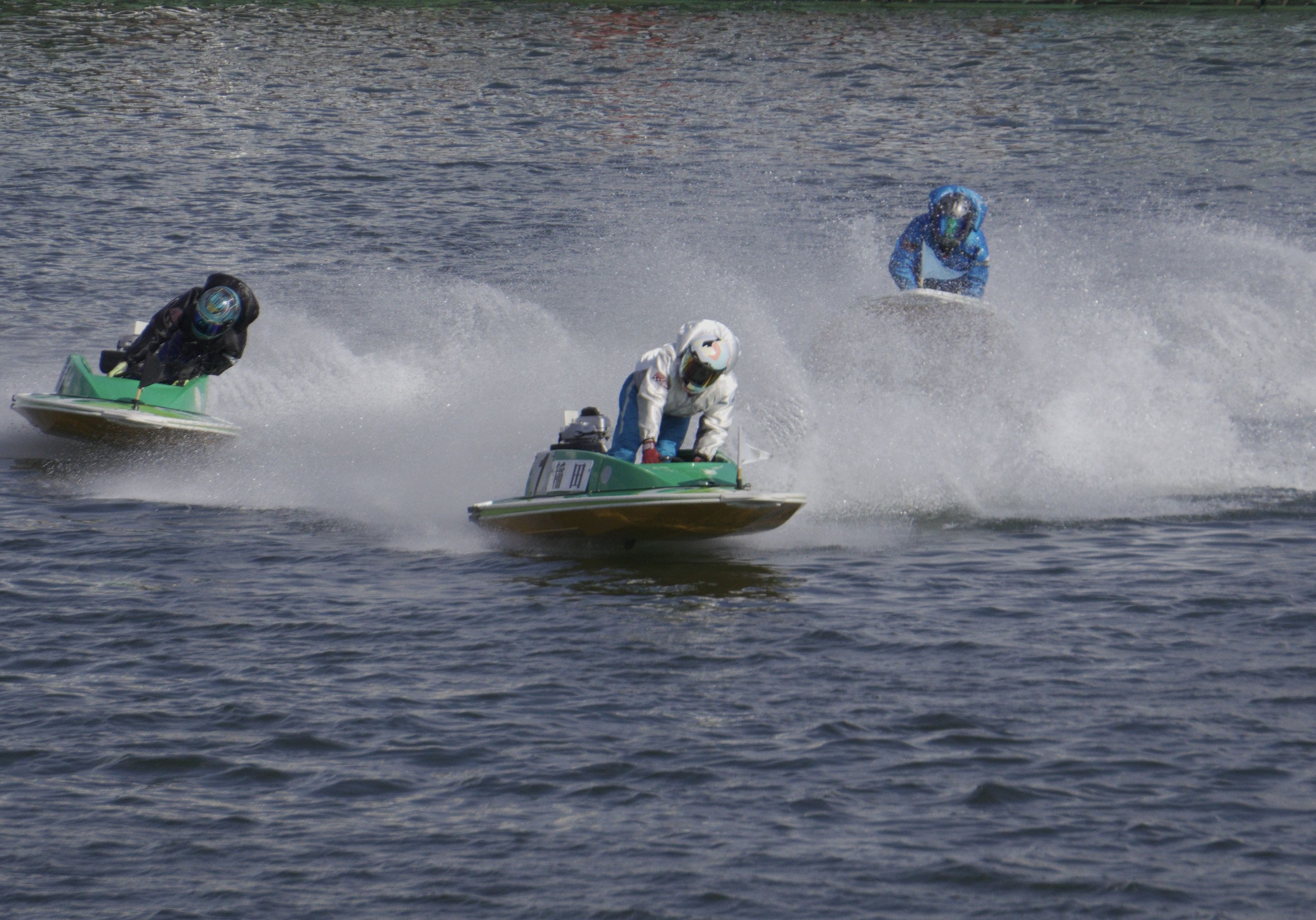 ボートレースを撮影に、近くで見るとモーター音に迫力あり
