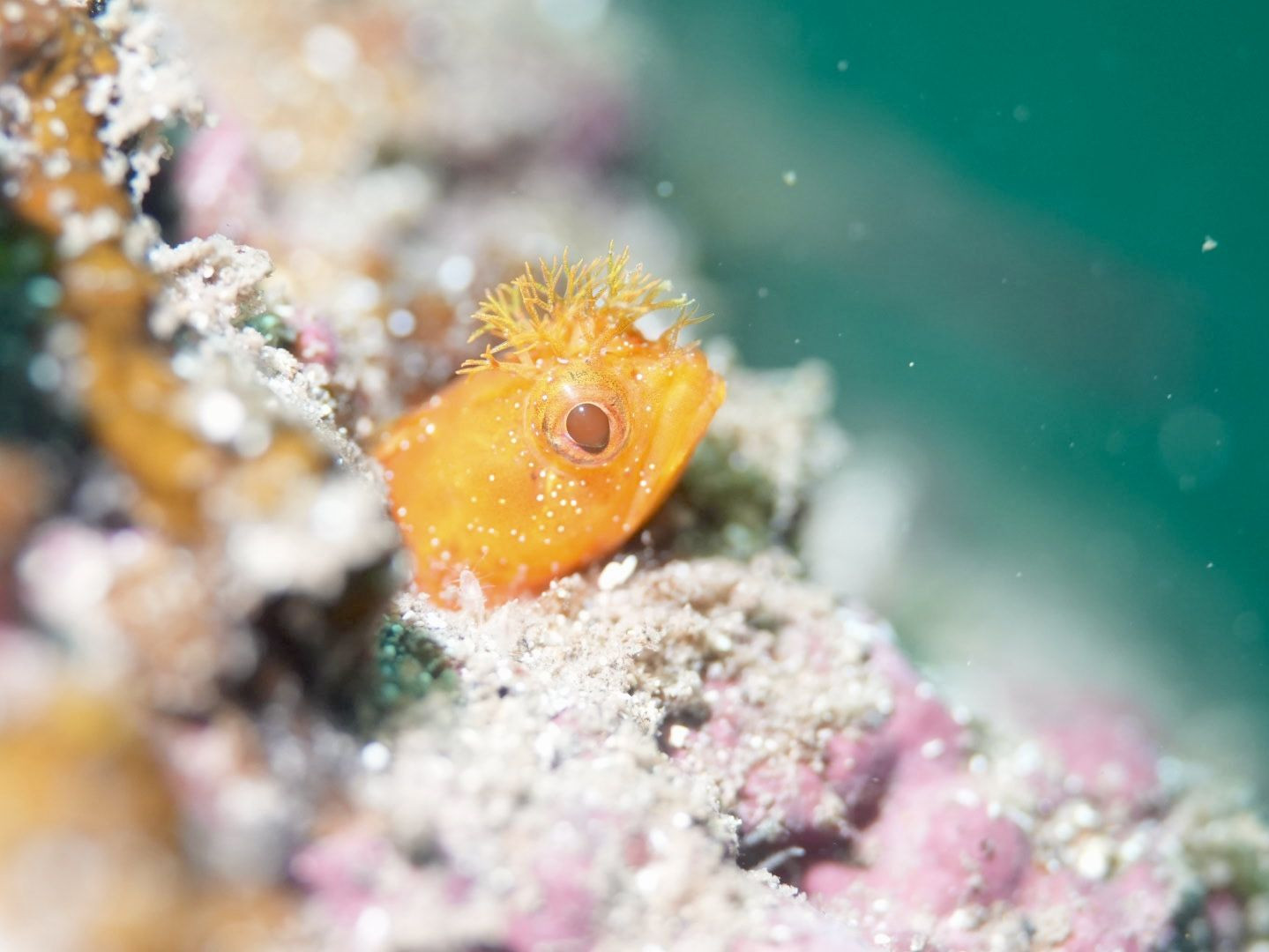 真鶴の福浦でコケギンポです! 黄色可愛いですね。 つぶらな瞳とブロンズのモヒカンヘアー ついついカメラを向けちゃいます