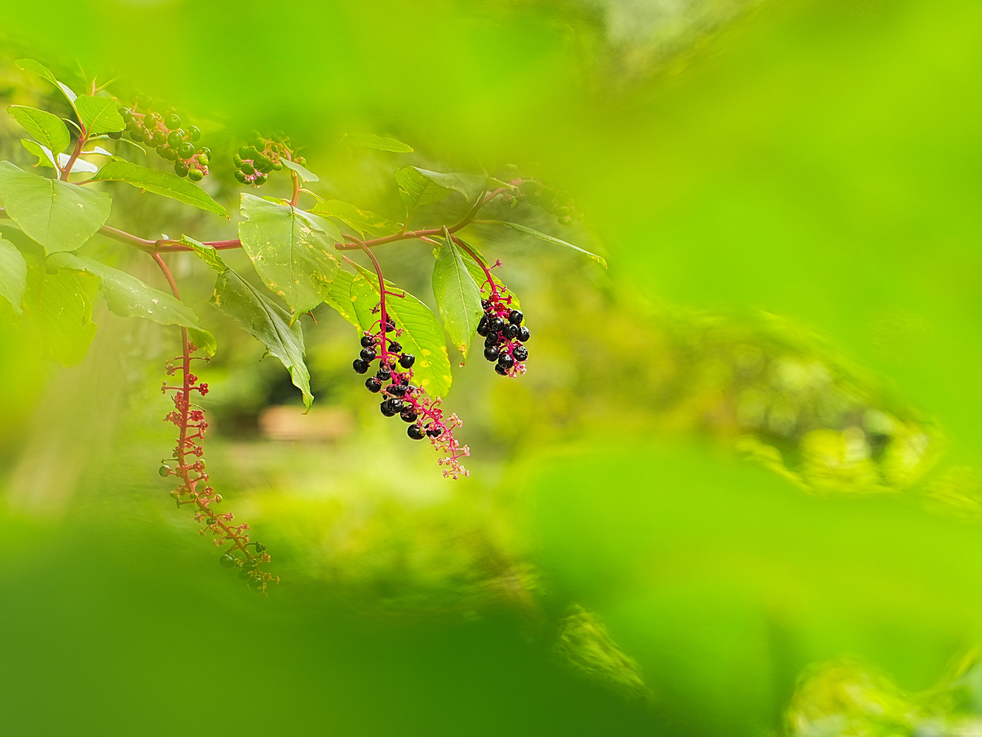 厚生労働省によると、ヨウシュヤマゴボウは果実と根に有毒成分を含み、食べると2時間ほどで腹痛や嘔吐、下痢を起こし、ついで延髄に作用し、けいれんを起こして死亡するという。果実はブルーベリーに、根はヤマゴボウに似ているため、注意が必要だ。 TAMRON 28-75mm f2.8 Di Ⅲ VXD G2 使用。