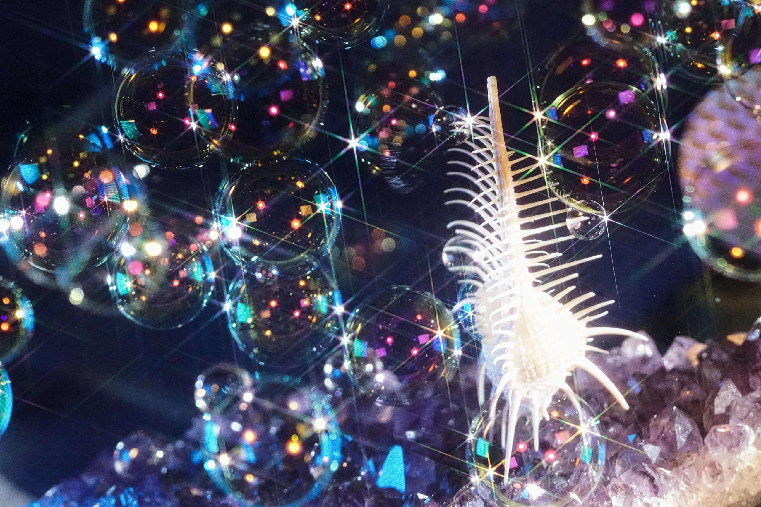シャボン玉で海を表現しました