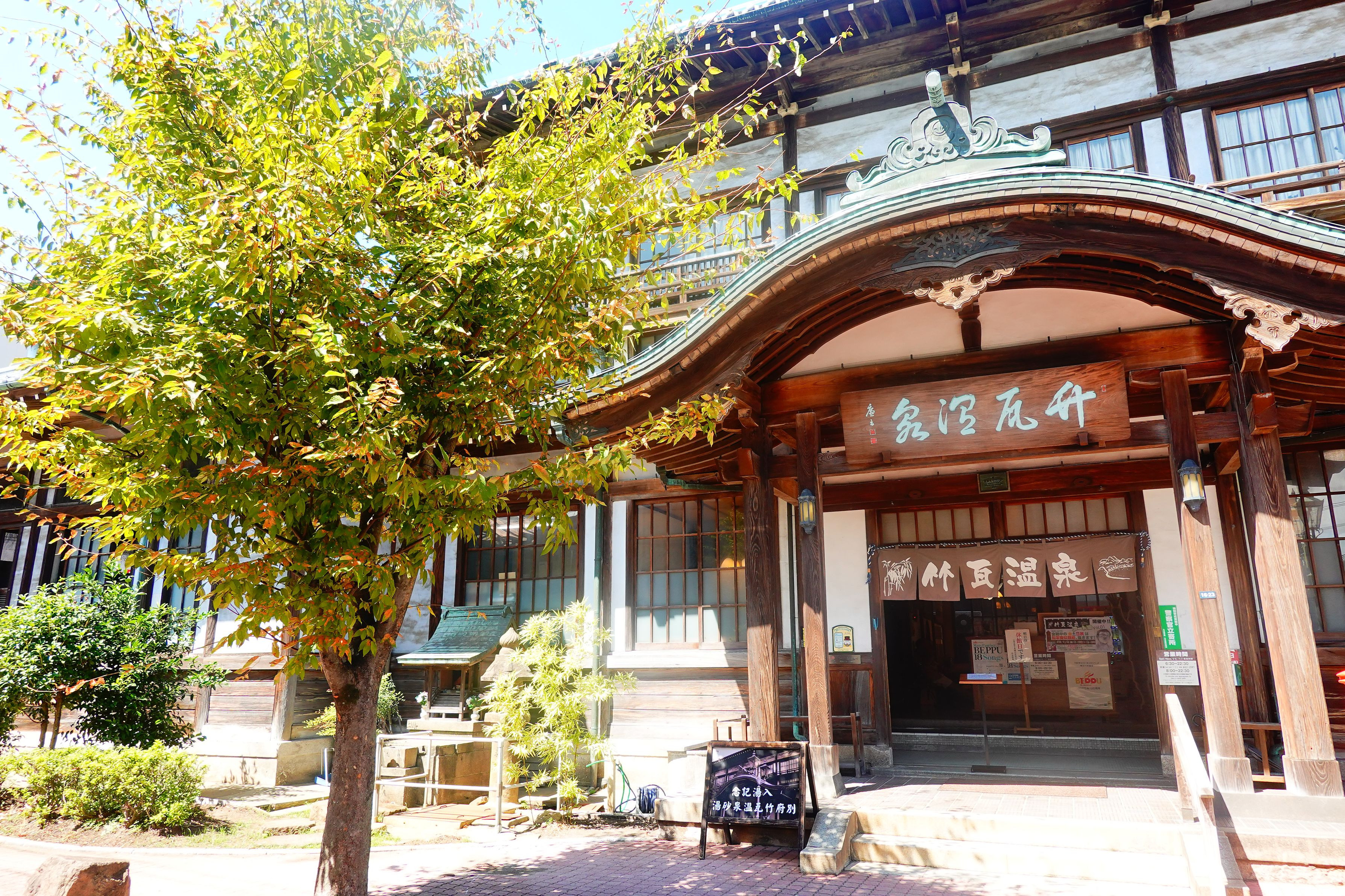 明治12年創設で当初建築されたものは竹屋根葺きの浴場でその後改築されたものが瓦葺きであったため竹瓦温泉の名称がつきました。