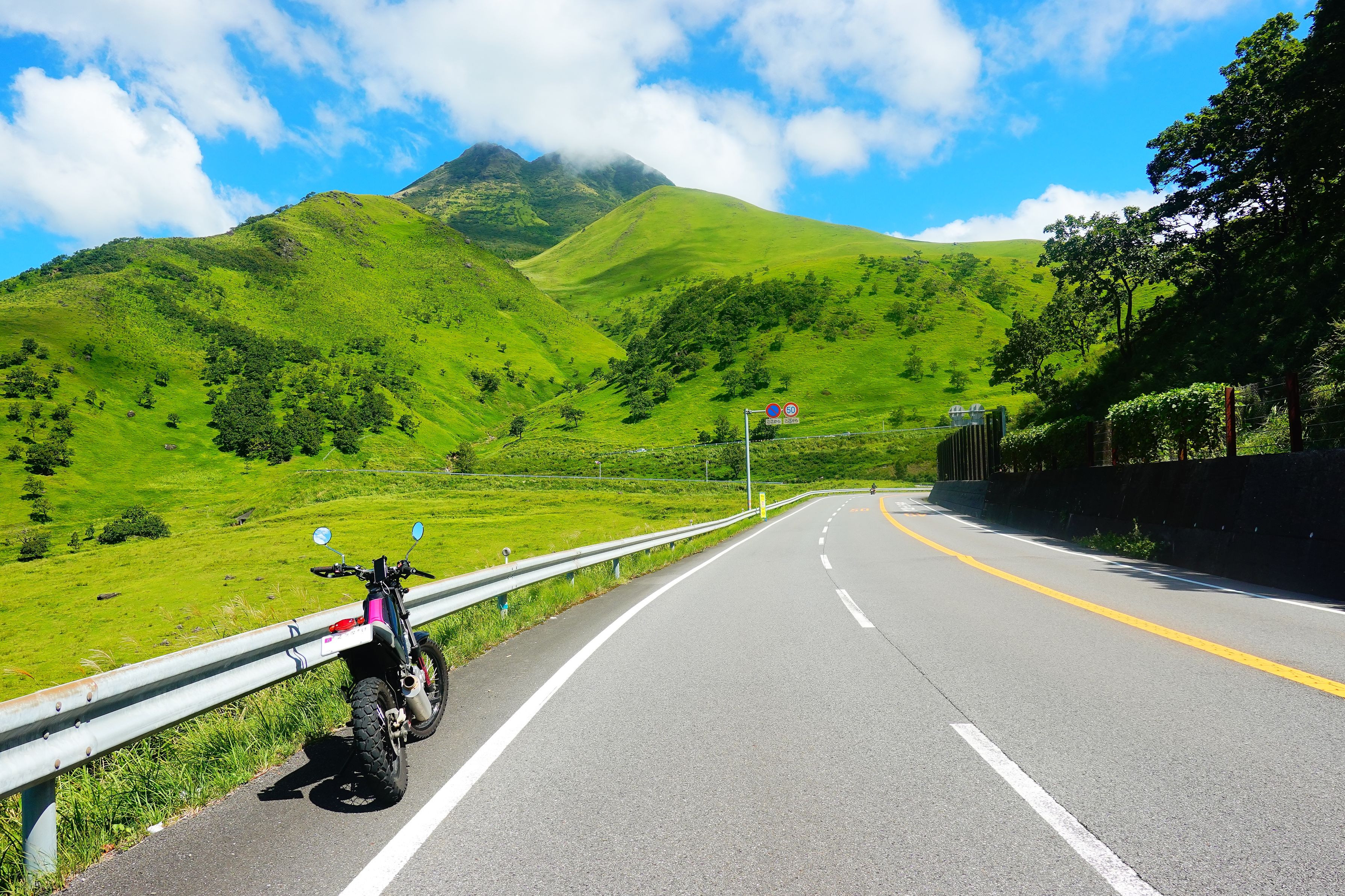 製品情報>My Sony>αcafe>やまなみハイウェイより望む由布岳と YAMAHA トリッカー XG250(アコモさん)