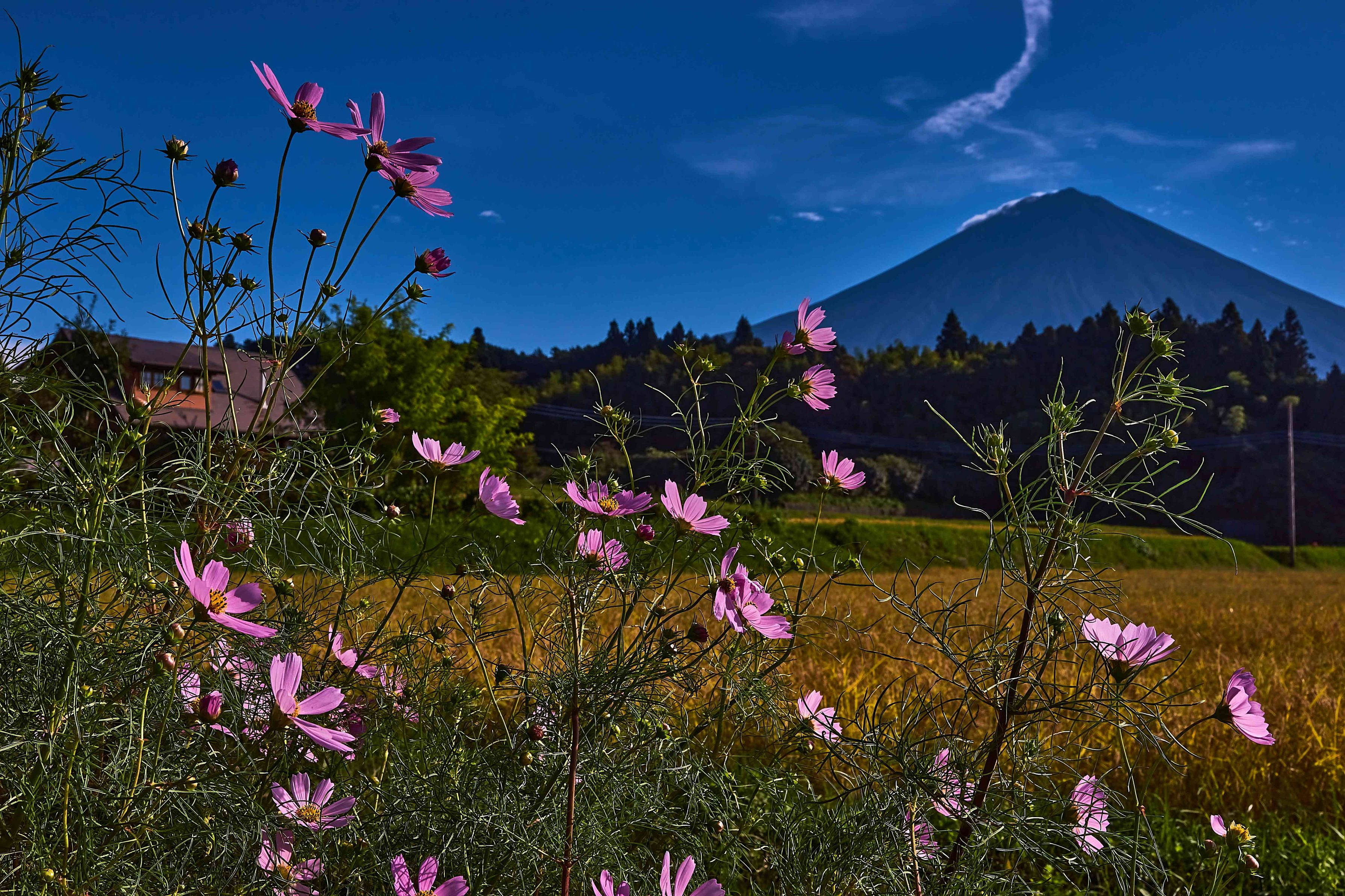 青い空、富士山にコスモスが良く似合う。