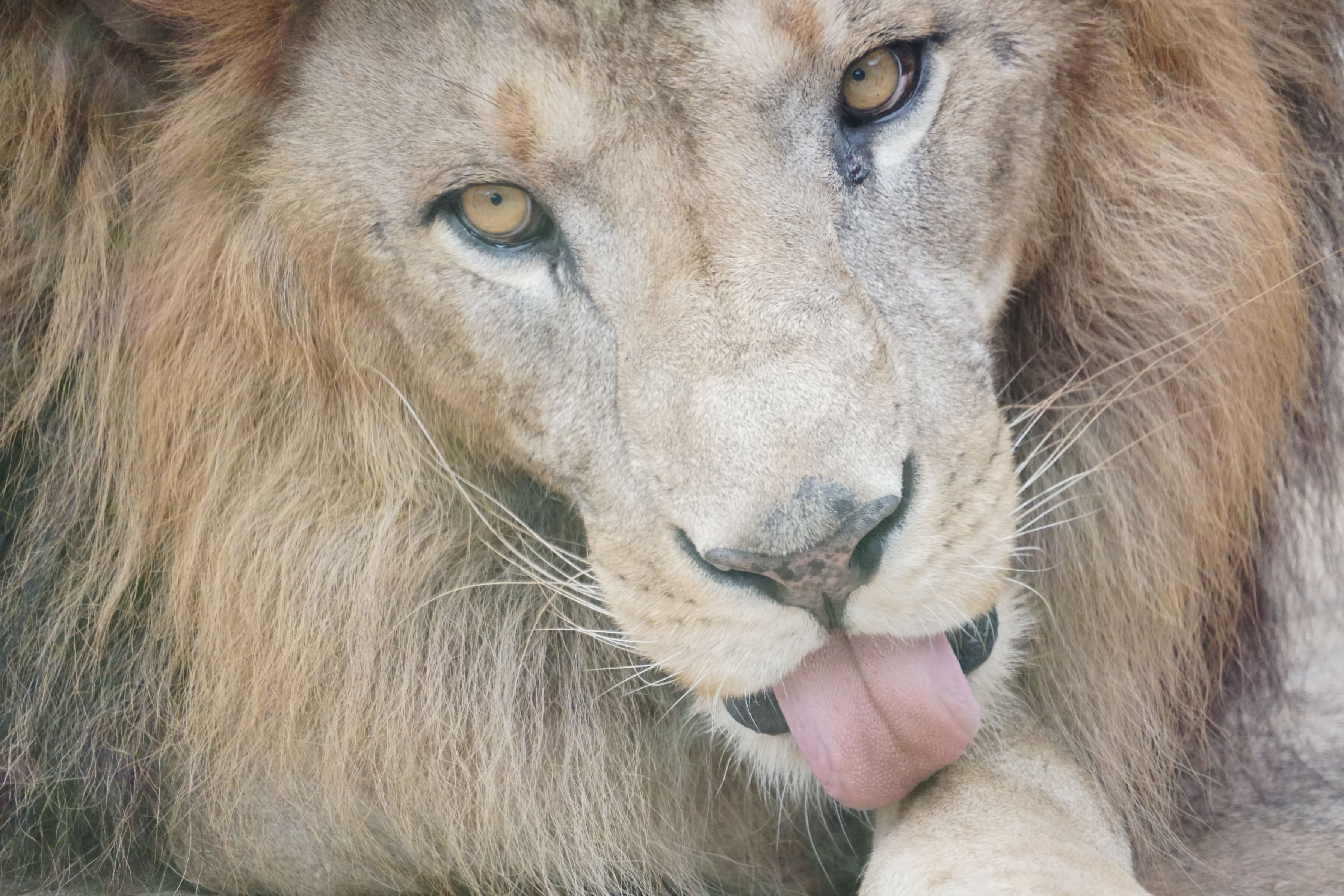 千葉市動物公園のライオン。手を舐めている。