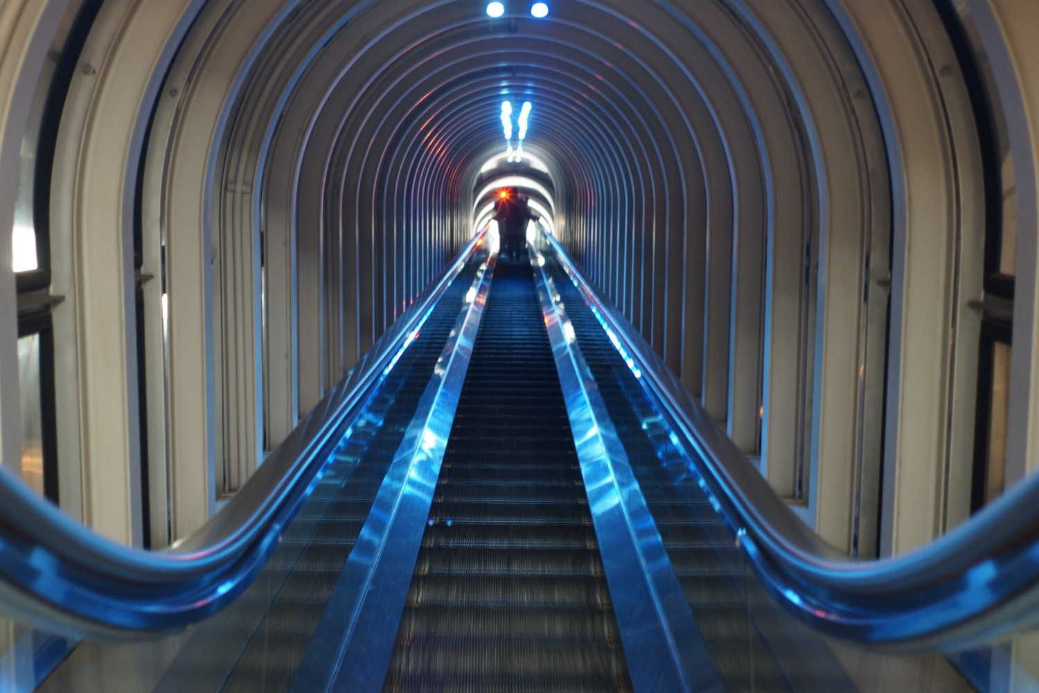52階までエレベーターで一気に上がってきたのに、展望台まではじらすように2回使わされるエスカレーター