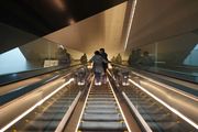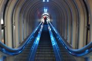 展望台直下にあって、眺望への期待感を高めている長いシースルーのエスカレーター