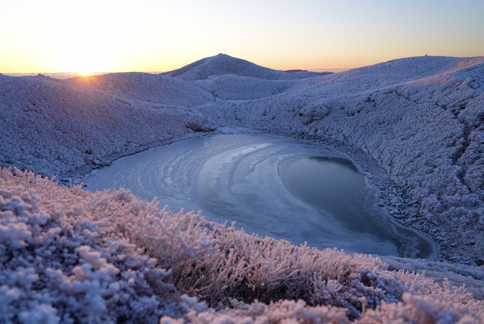 2024年1月撮影 朝日が霧氷を照らし 薄いピンクになる瞬間 数分間の景色です。 マイナス15度の朝でした😅 #カレンダー2025#