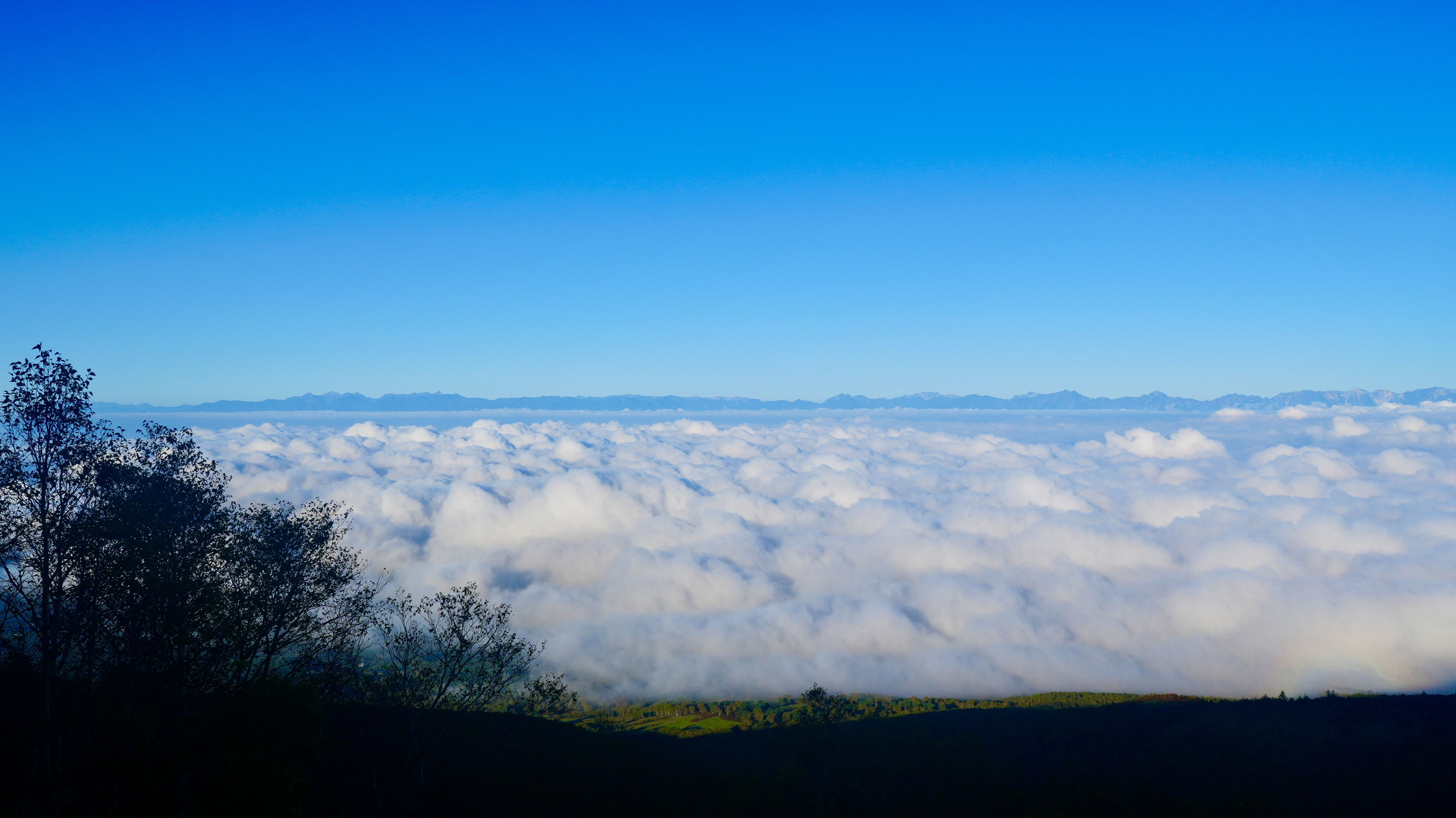 菅平牧場から根子岳に登る途中で撮りました。 穂高から白馬までの北アルプスが雲海の向こう側に見えました。