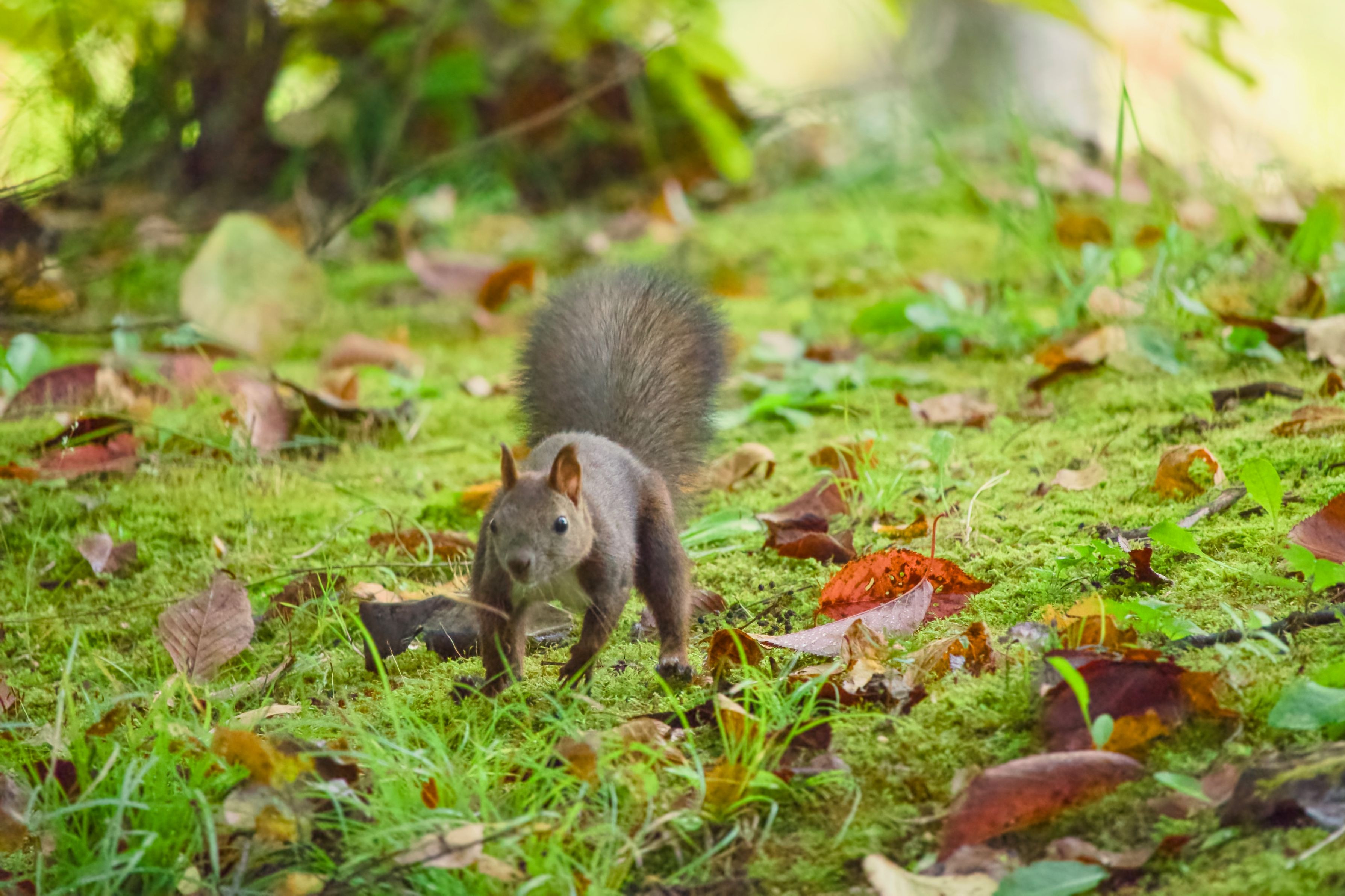 尻尾が冬毛に変わりつつあるエゾリスさんです。