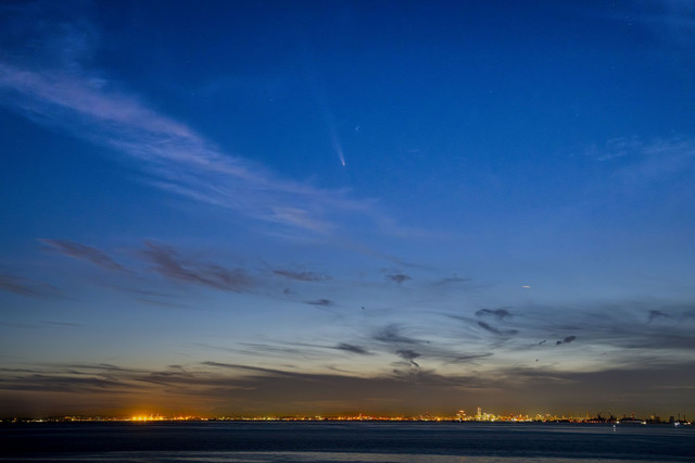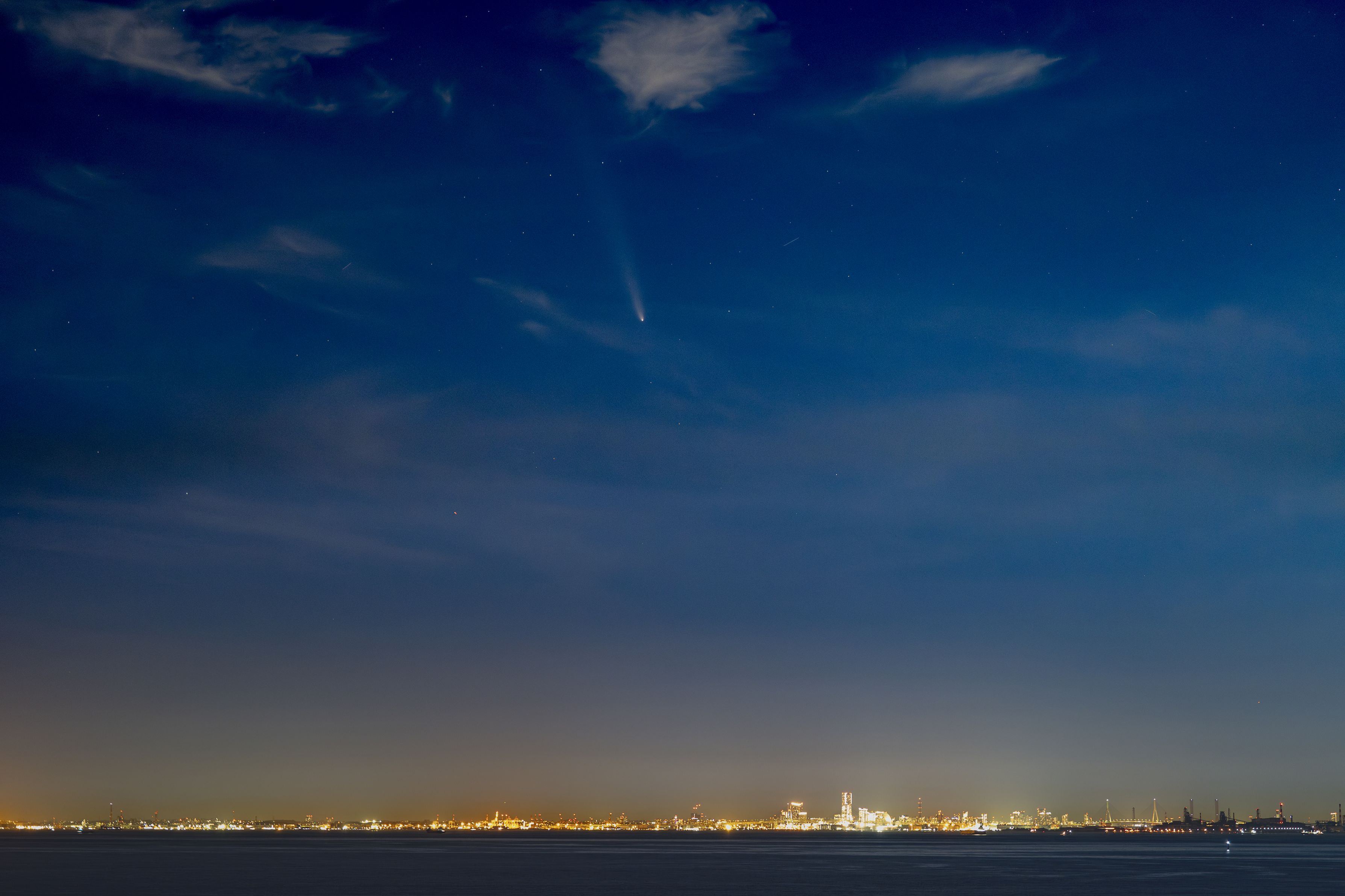 海ほたるより、横浜の夜景に沈む紫金山・アトラス彗星を狙いました。なんとか低空の雲に隠れる寸前の彗星を写真に収めることが出来ました。