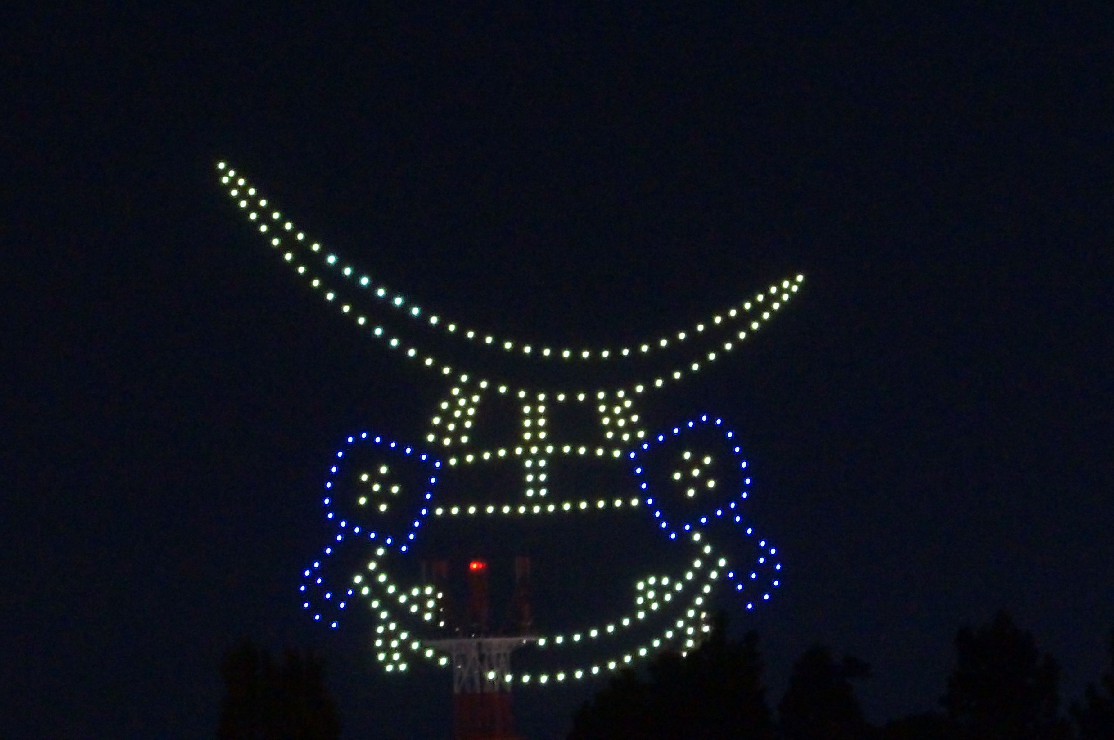 (よねざわ戦国花火大会)建物塔の警告赤色灯が片眼になりました。