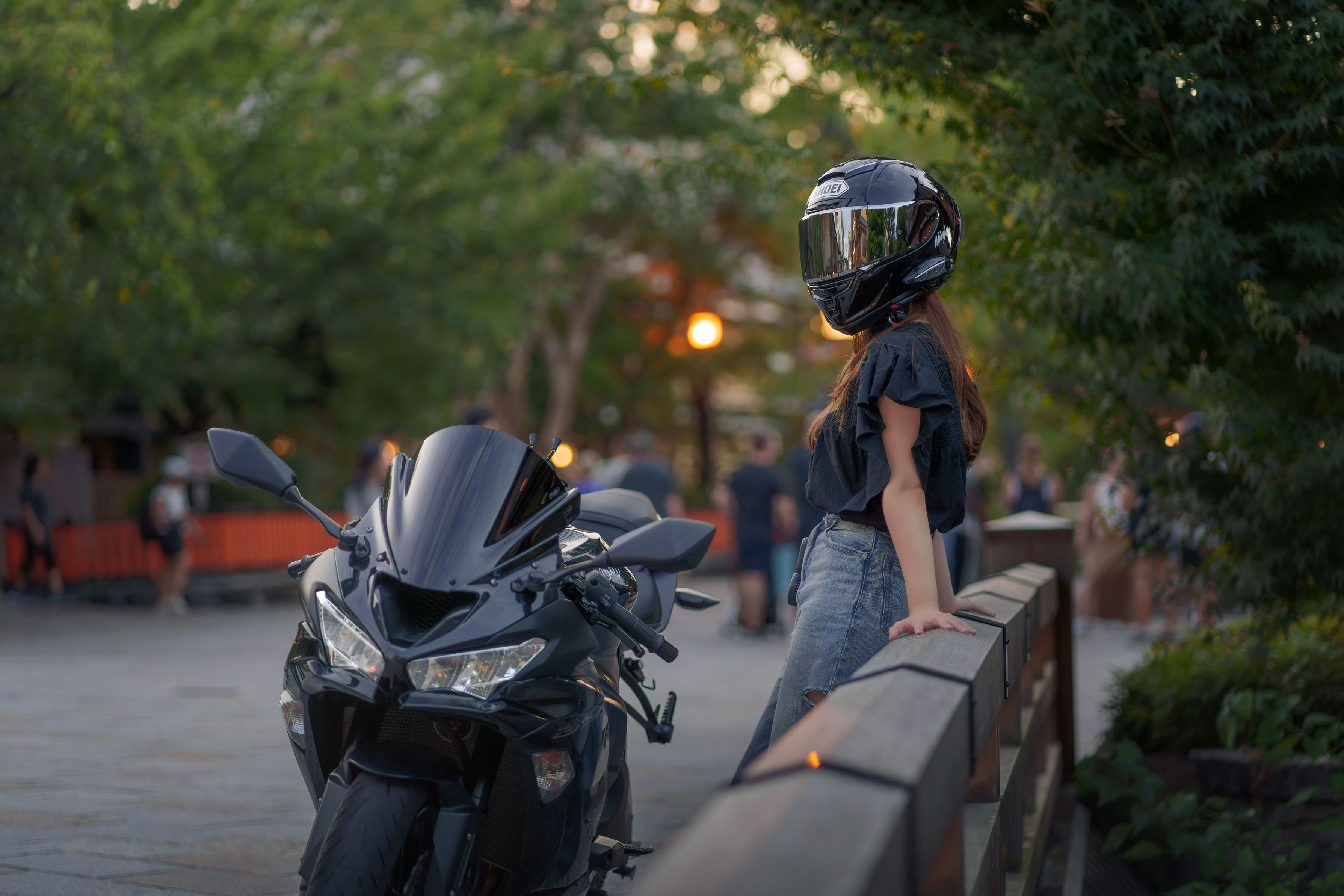 友人のバイク乗り女子を撮影させていただきました。 撮影場所は京都の祇園、海外の方に声をかけてもらいながらの撮影でした。