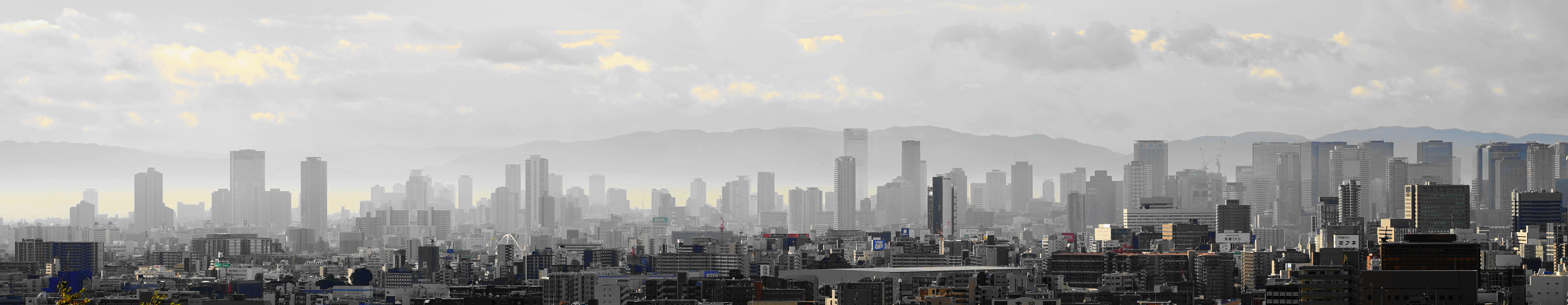 大阪市内の南東方向を眺めています、バックにあるのは奈良県から和歌山県まで連なる和泉山脈、金剛山や葛城山等関西で人気の山が含まれています、真ん中で一番高いのは、日本一の座を降りた「あべのハルカス」です。