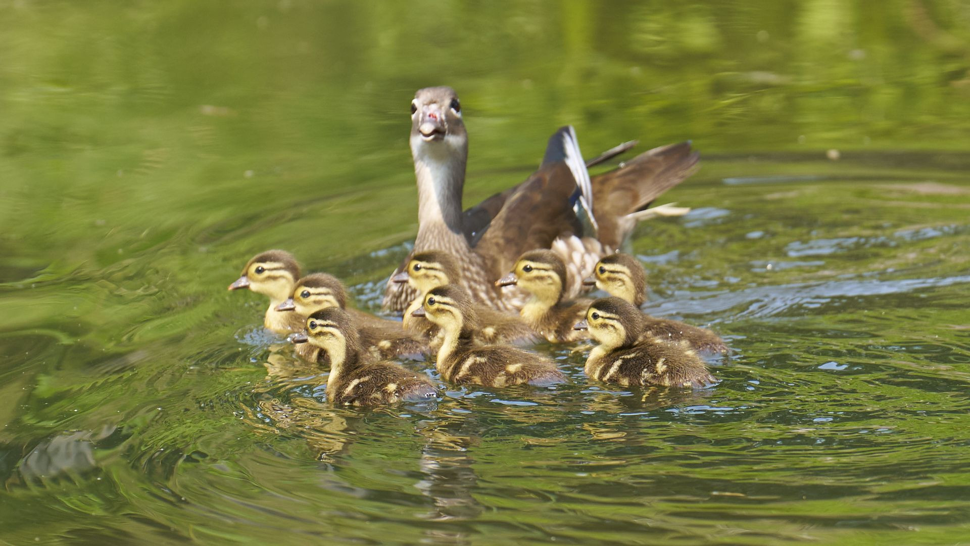 札幌市中島公園で生まれたオシドリのヒナとその母鳥です。7月に撮った写真ですが、今見ても癒されます。ヒナは立派に成長しました。