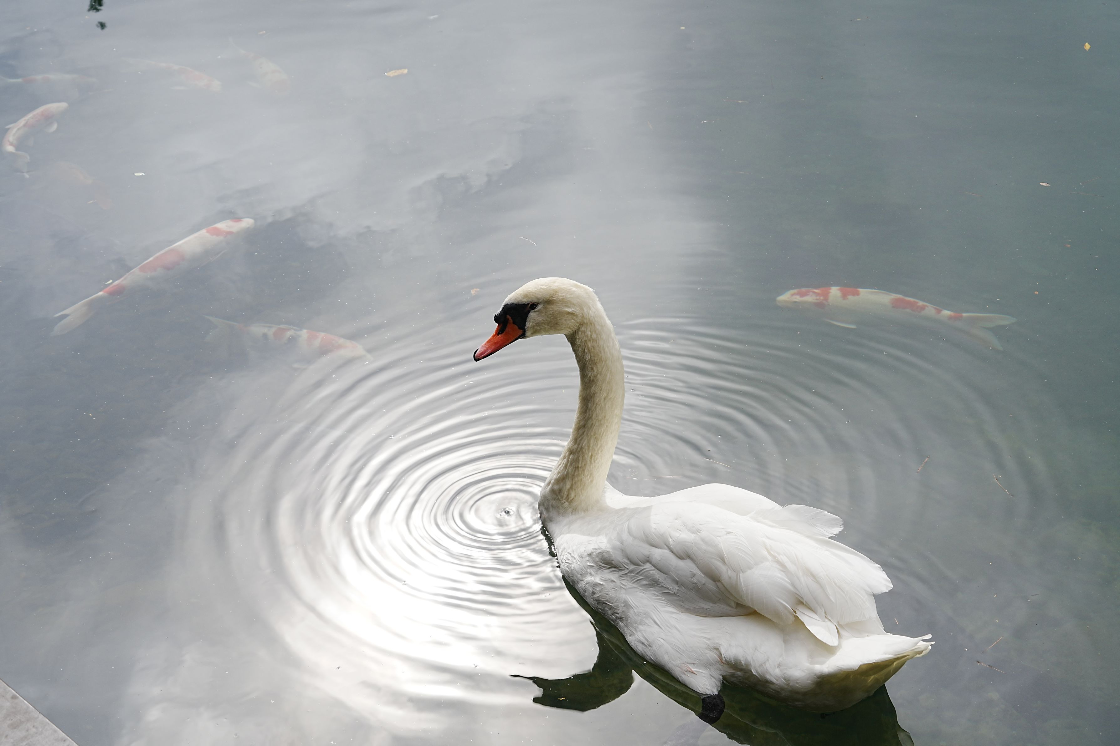 山梨県の湖で一羽の白鳥を見つけました。
