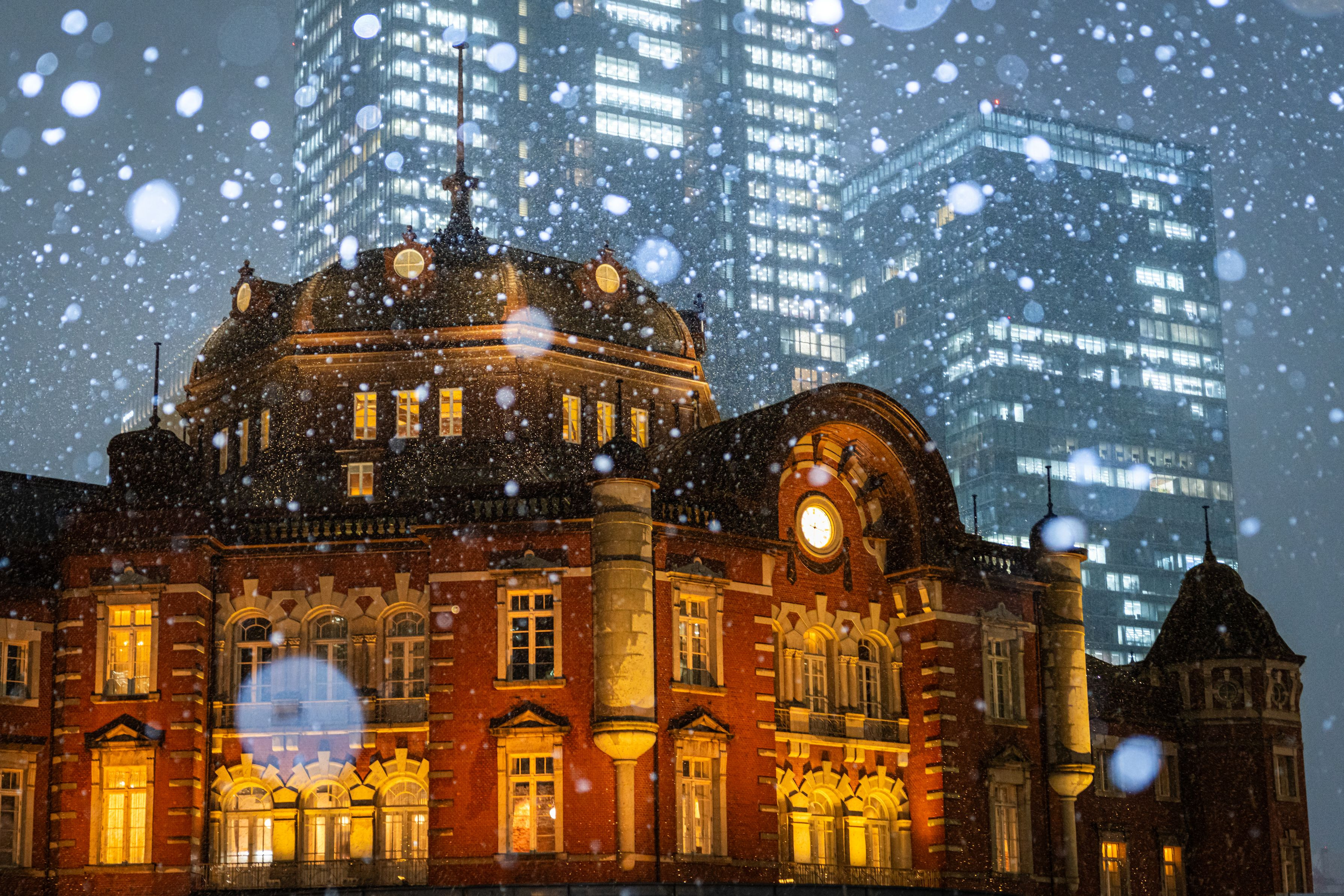 #カレンダー2025# 2024年2月5日、東京の天気予報は雪…ちょうど京都からの帰りで東京駅に立ち寄りました。 憧れの東京駅に降る雪を目の当たりにして寒さも忘れ、ずぶ濡れになりながら三脚を立てて撮影しました。もしかしたら、撮れるかも…と淡い期待で持参していたストロボと三脚が本当に役に立ちました。