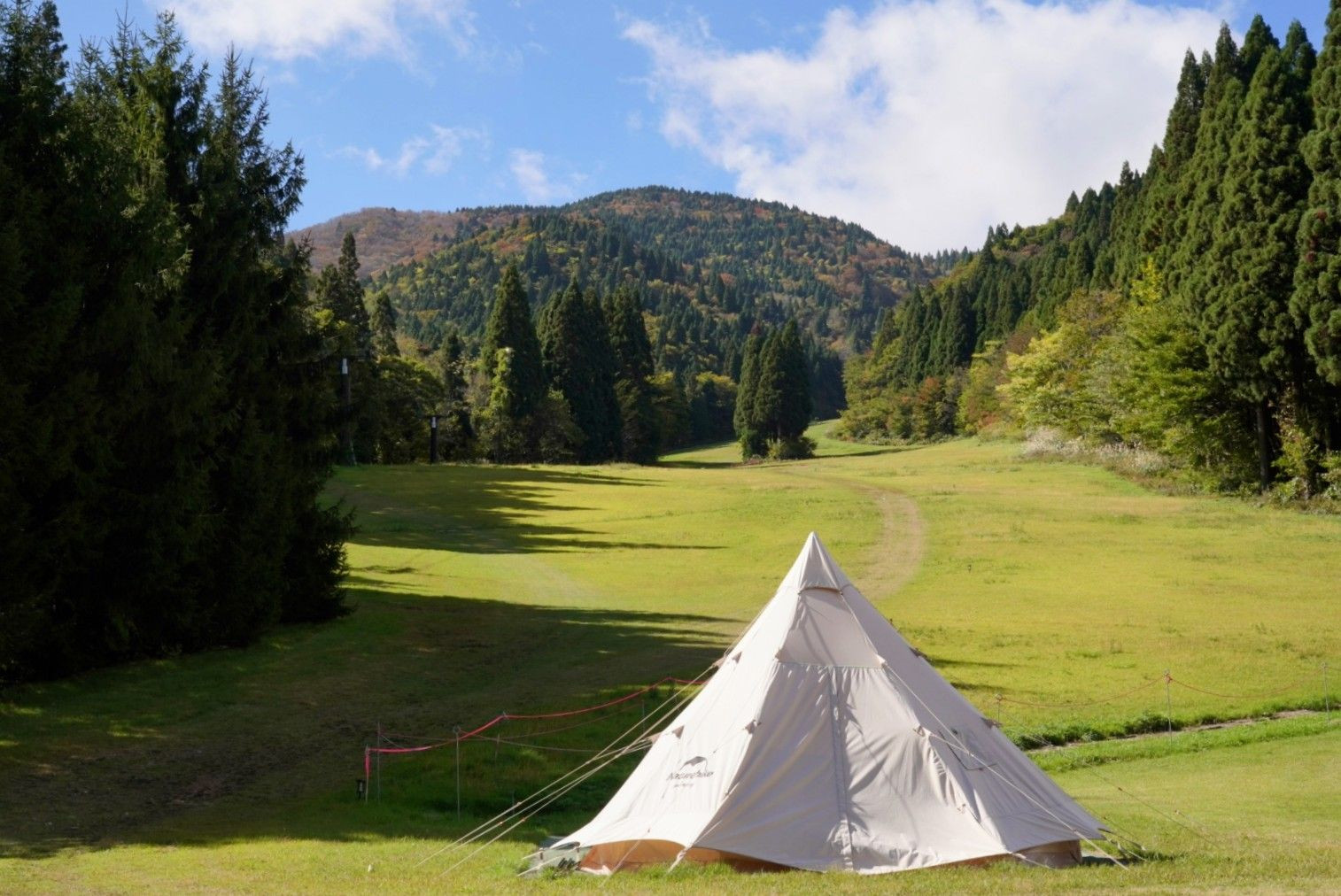 青い空と緑の木々そして 山の上は紅葉していてとても気持ちが良かったです。