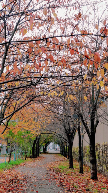 買い物に行く途中で通る桜並木です そろそろ終わりですね