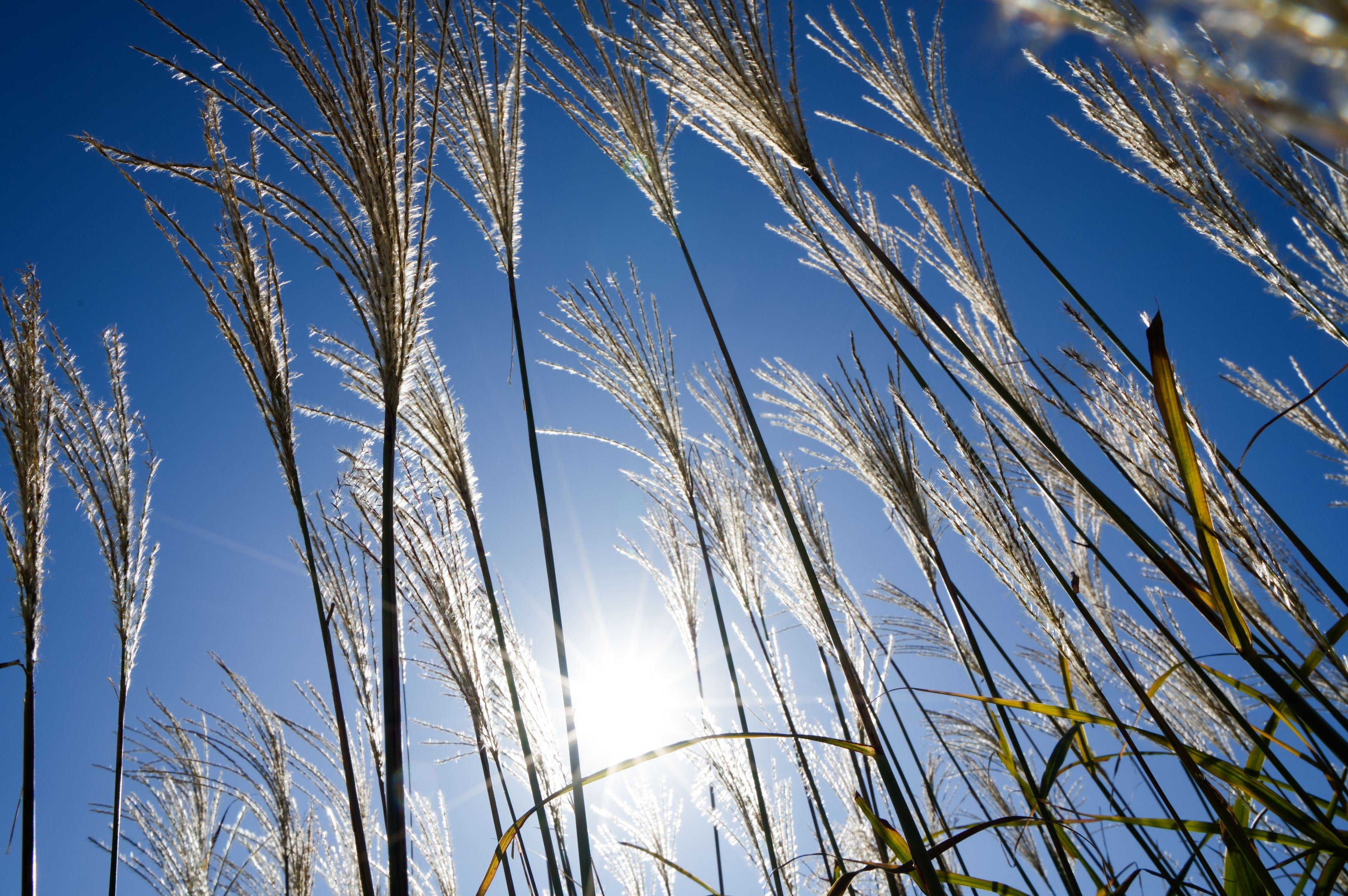 秋日和の散歩で見つけた、葦の穂。 太陽の光で、輝いていた。
